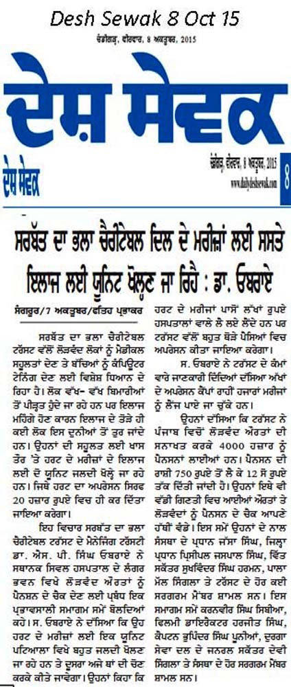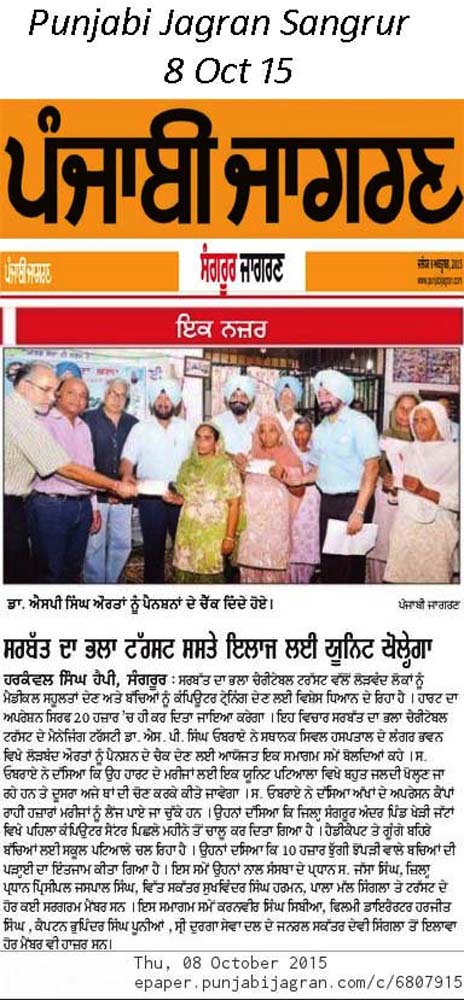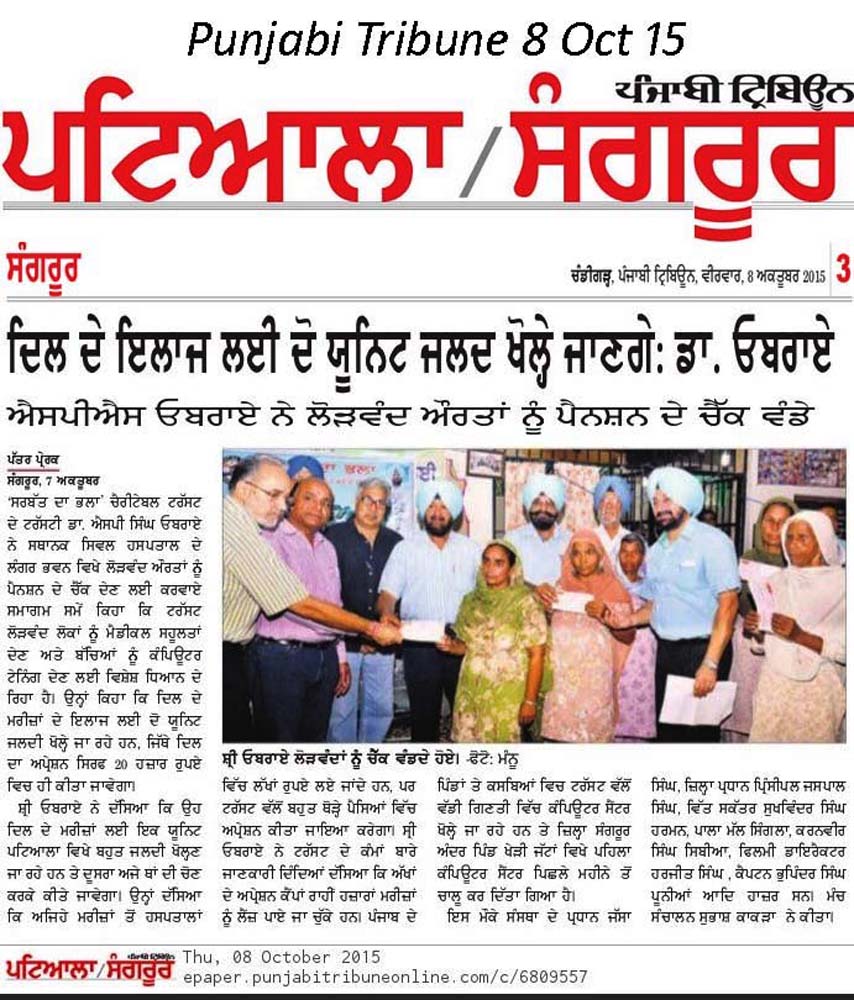 Pension cheques are distributed by Dr. Oberoi at Sangrur