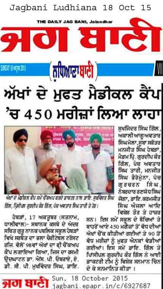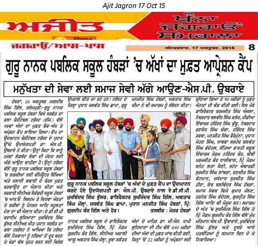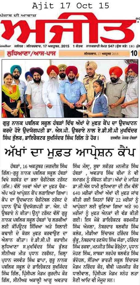 98th free eye checkup & operation camp at Village Humbra, Dist Ludhiana