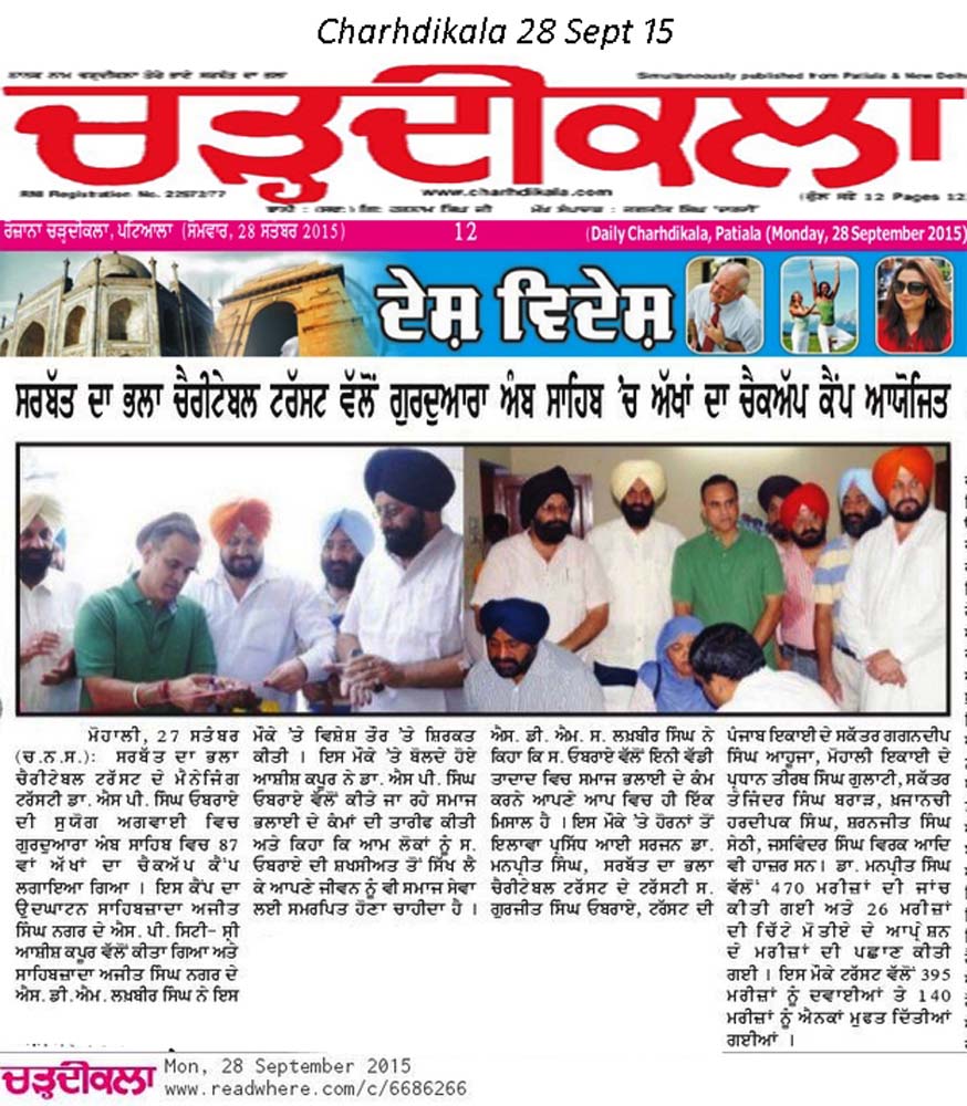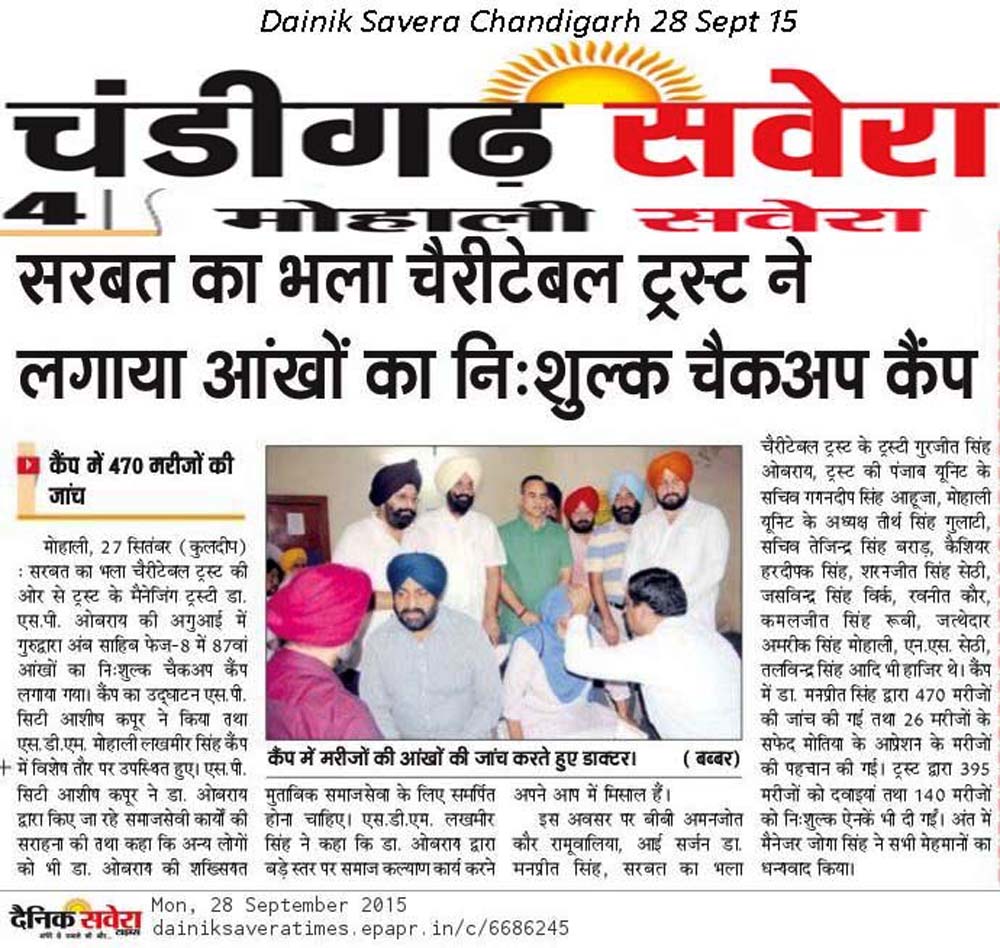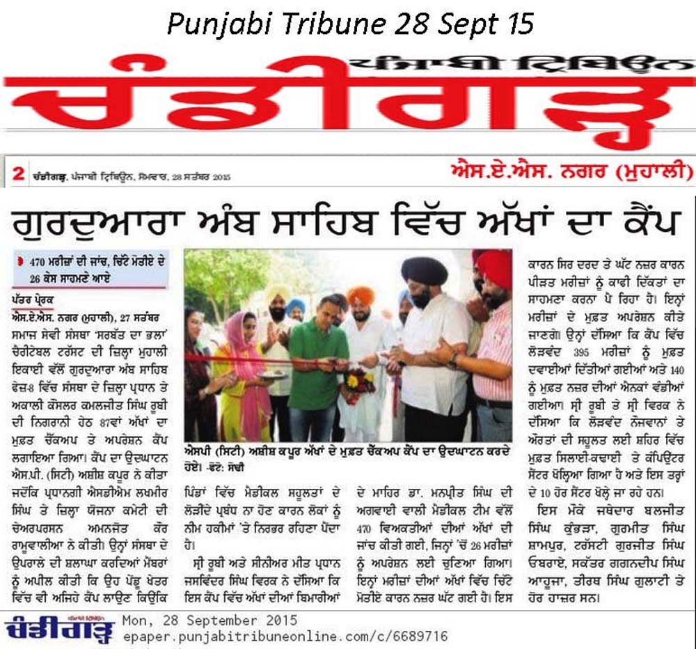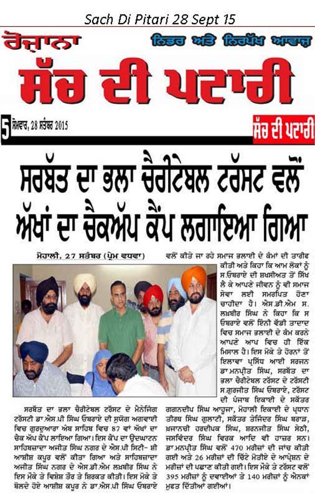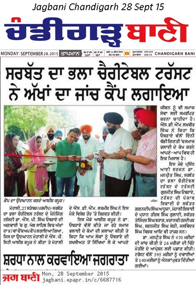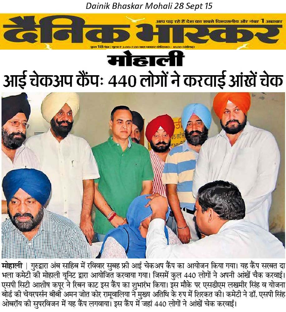 Eye Camp no.87, organised at Mohali on 27-09-15