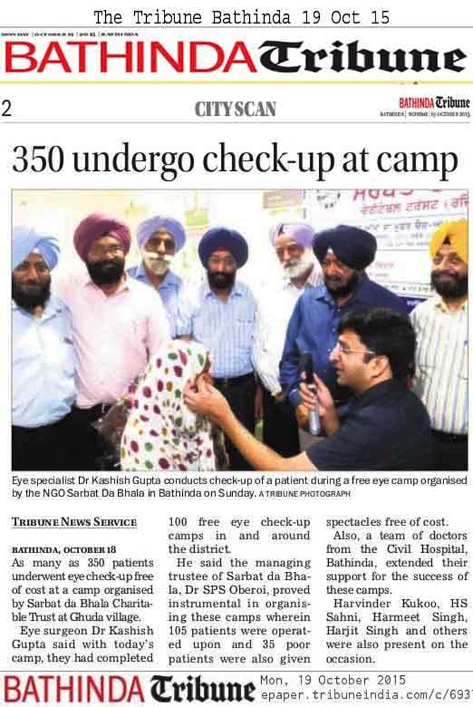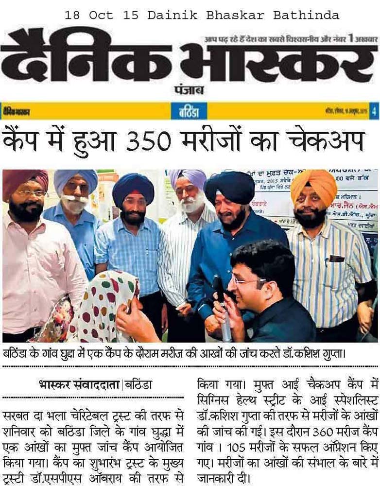 Eye camp no.100 at Village Ghudda, Dist Bathinda on 17 oct 15