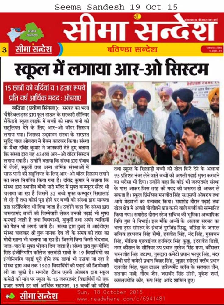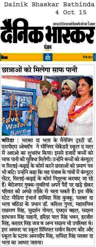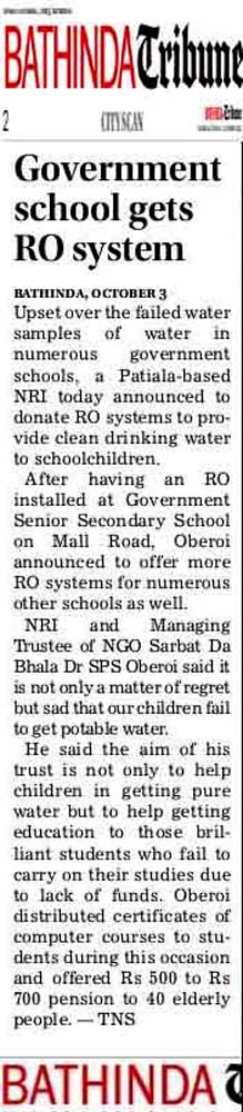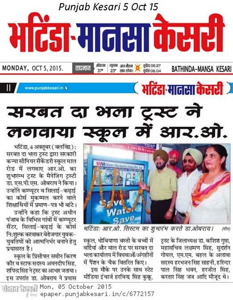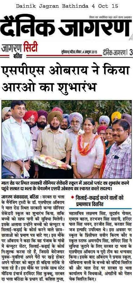 R.O.Water Cooler system in Govt. Girls S. S. School, Mall Road Bathinda