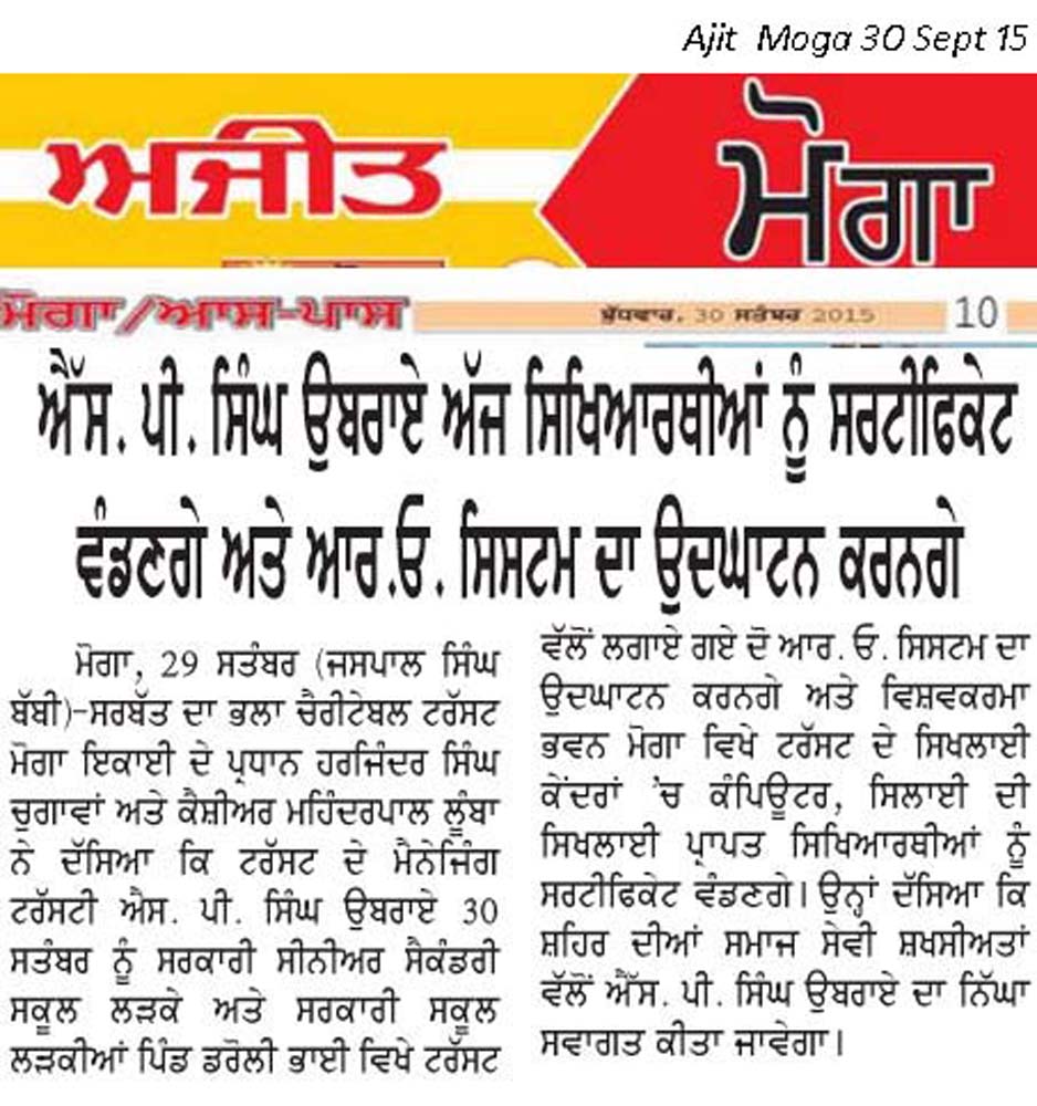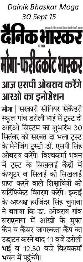 Inauguration of R.O. no. 407 & Distribution of Certificates at Moga