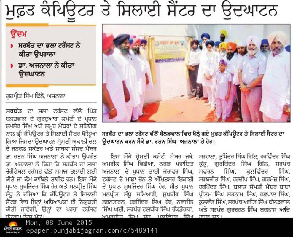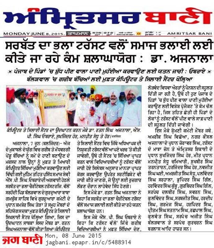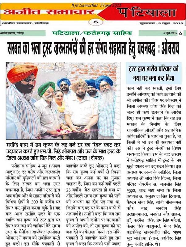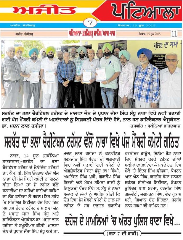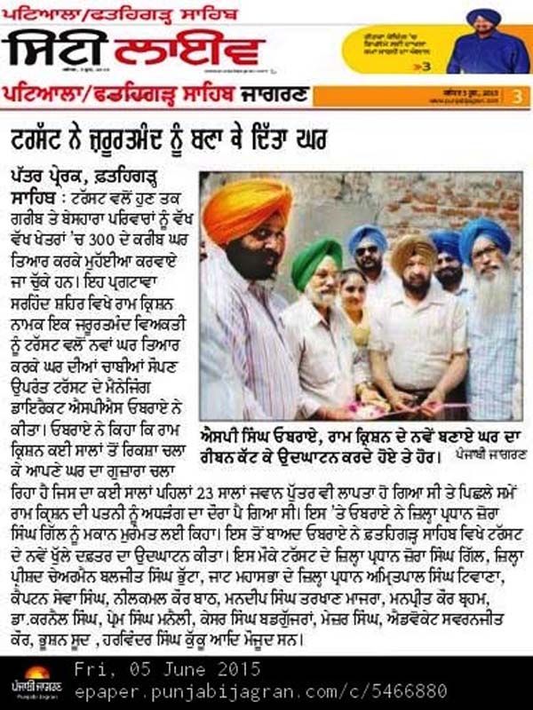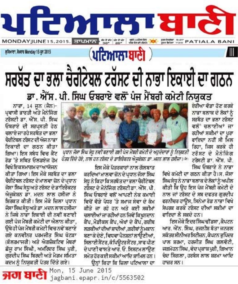 June 2015 -Sarbat Da Bhala Charitable Trust Inaugurated its branch office at Nabha