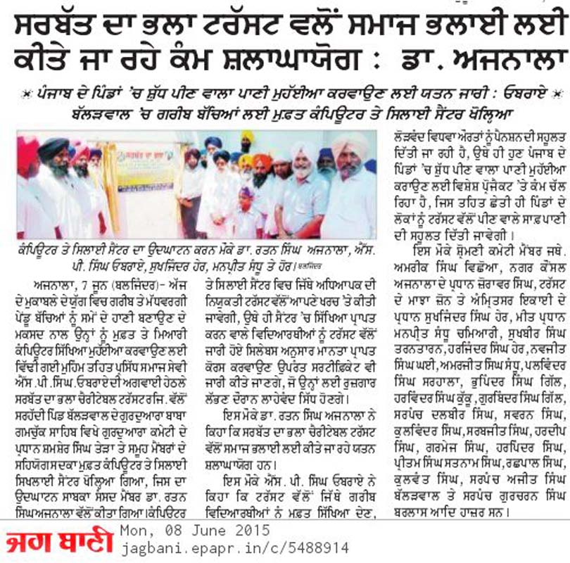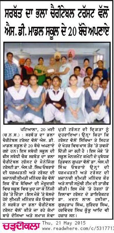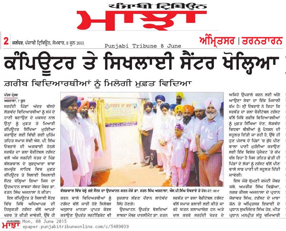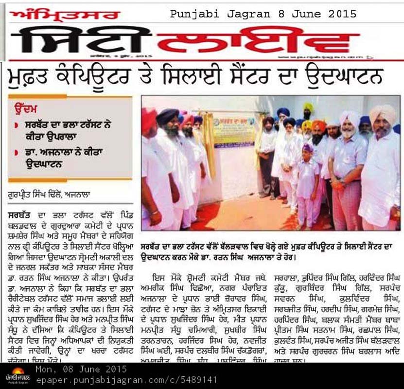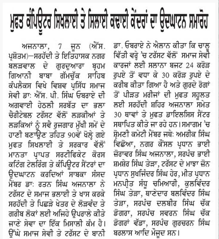 June 2015 -Sarbat Da Bhala Charitable Trust Inaugurated its branch office at Nabha