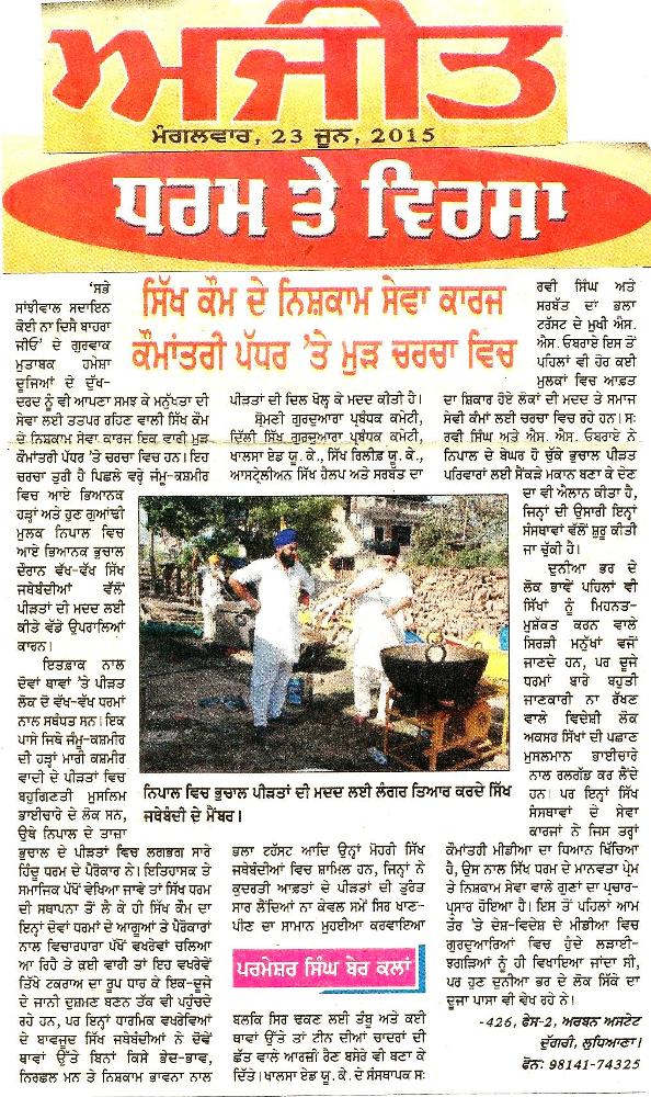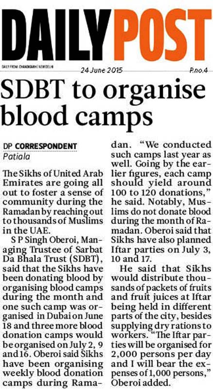 June 2015 - SDB and other Sikhs organisations are the main who helps many people