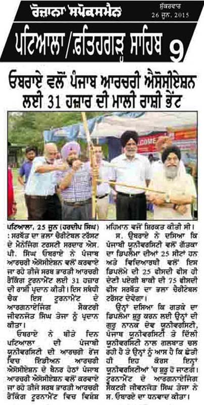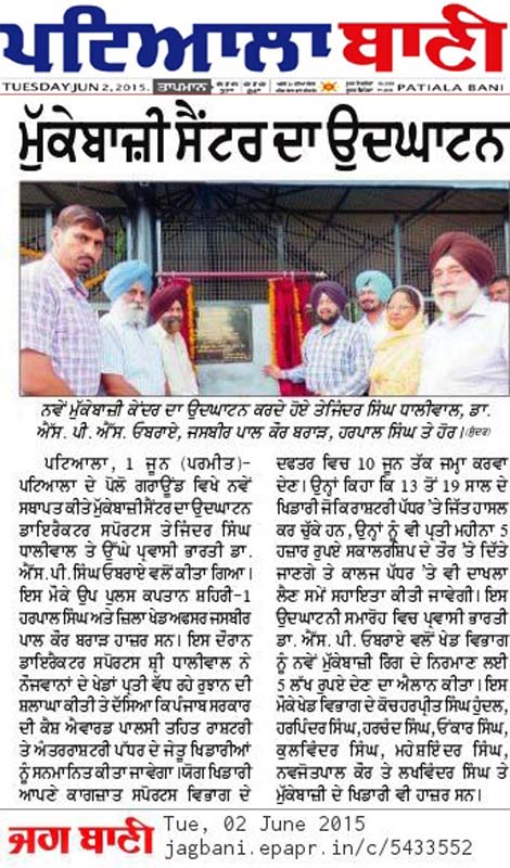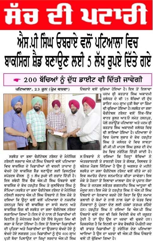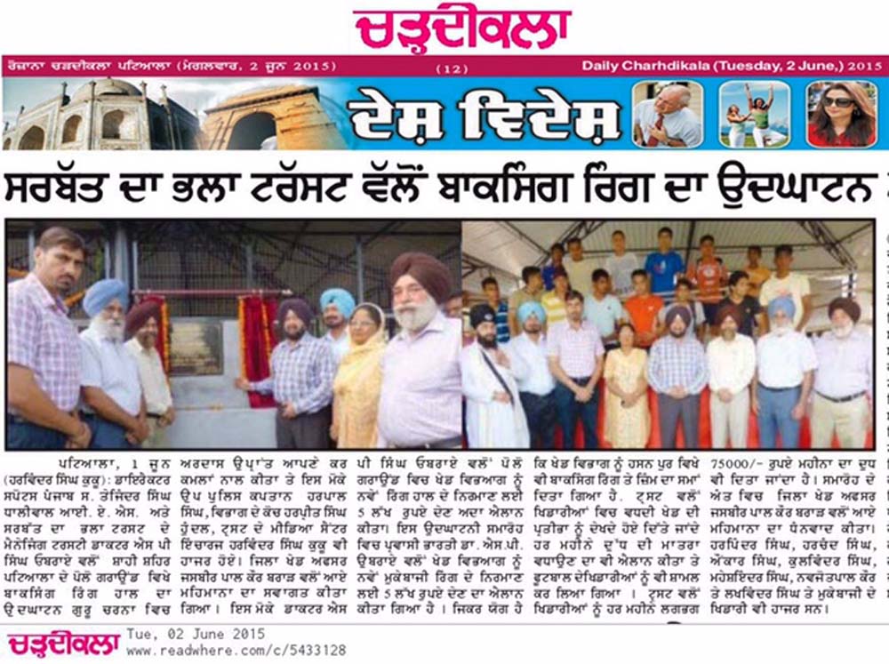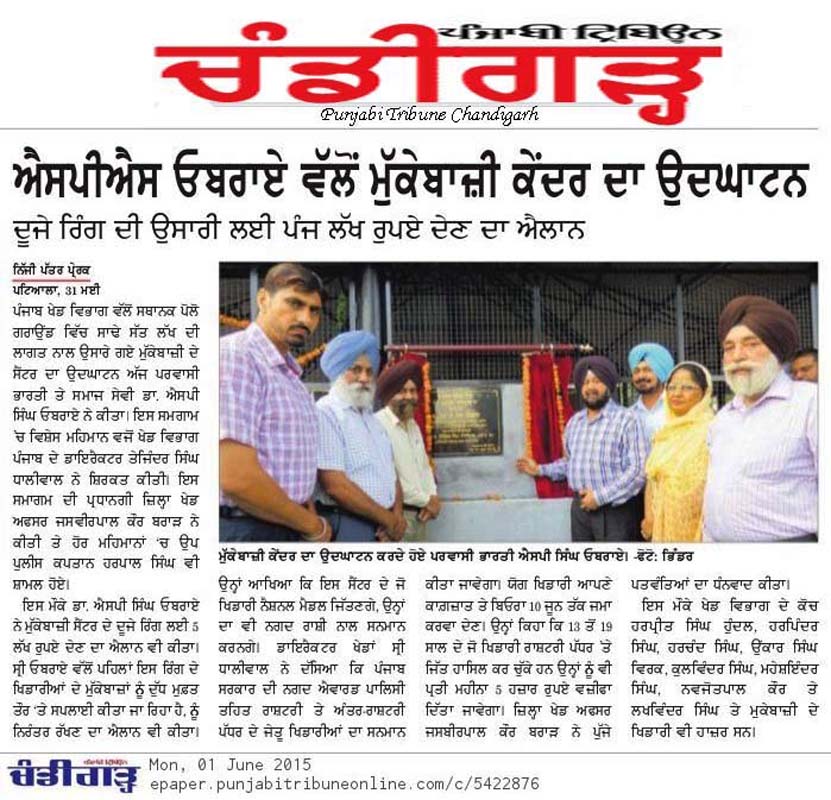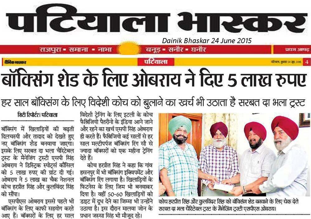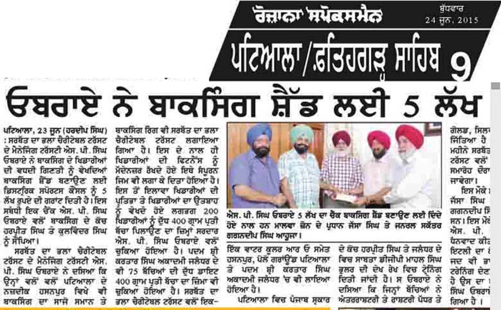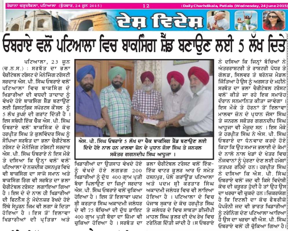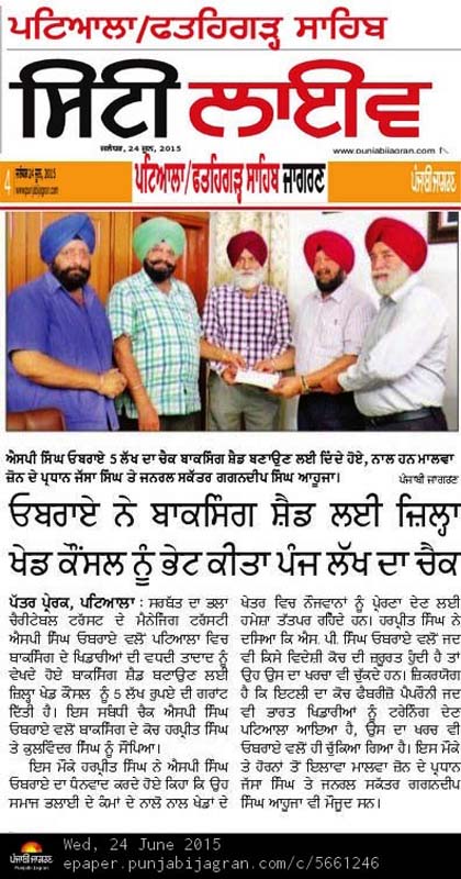 24.06.2015- Donated 5 lakh for Boxing Ring Hall at Polo Ground Patiala