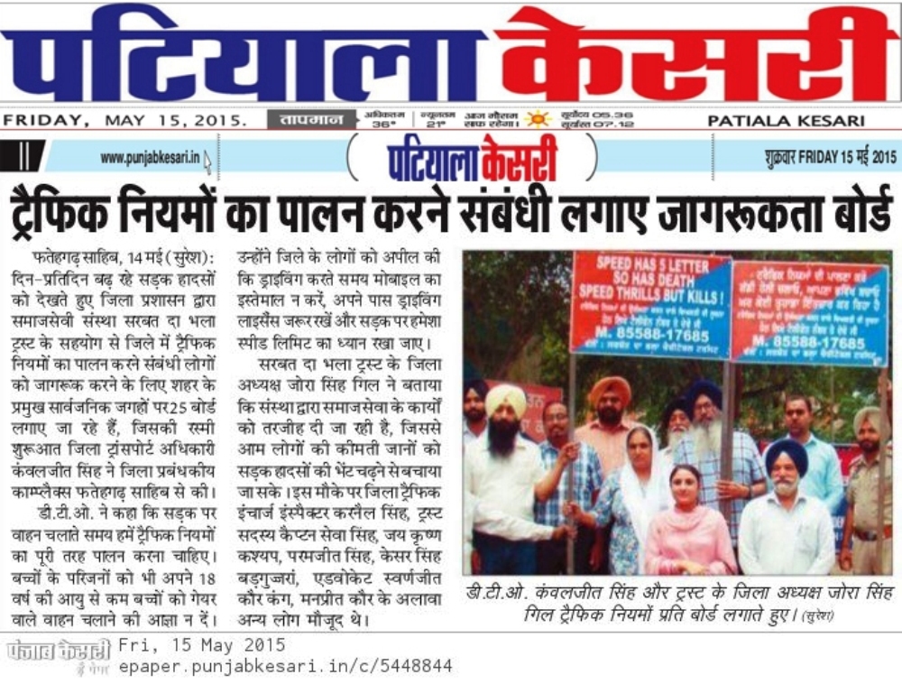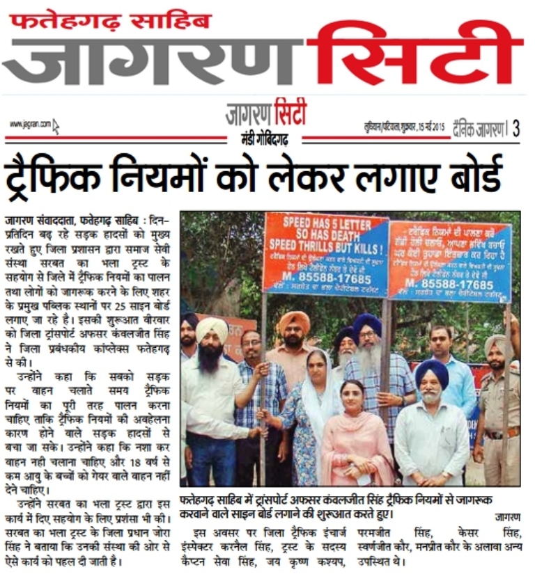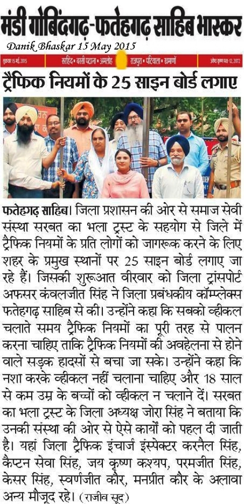 04.06.2015 - SDB Fatehgarh Sahib Unit & Distt. transport officer aware general public with the traffic rules