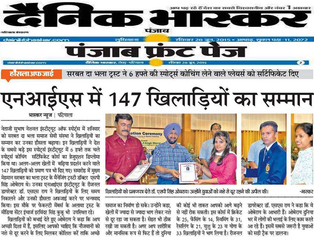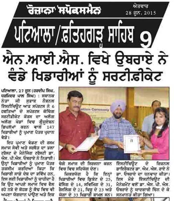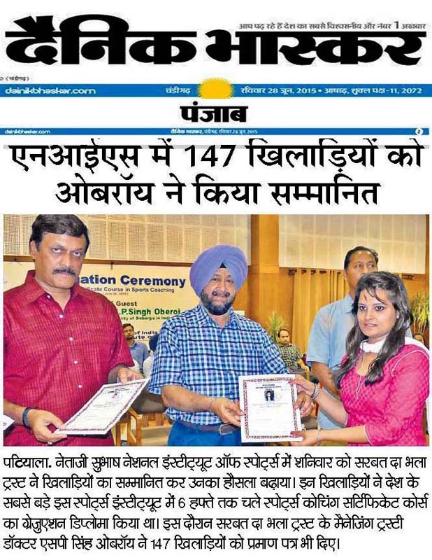 25.06.2015 - Dr. S.P.Singh Oberoi honored 147 players of Neta ji Subash National Institute of Sports