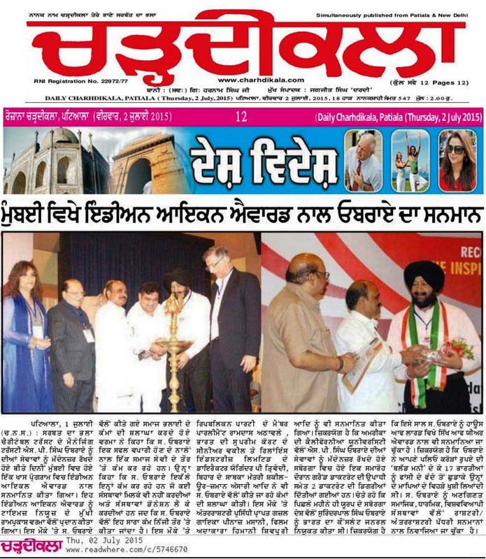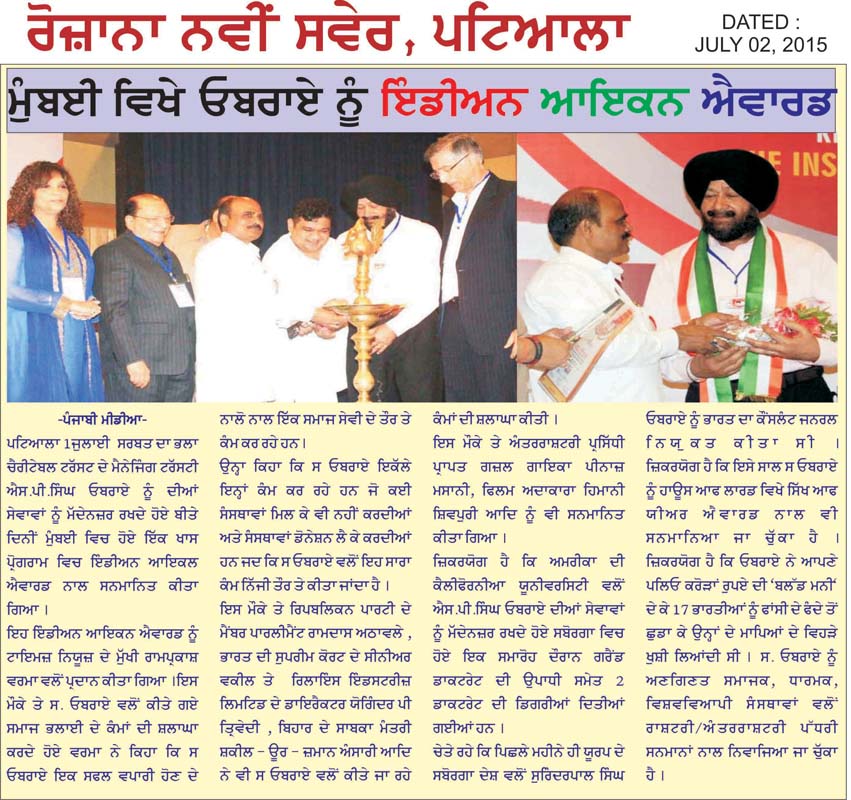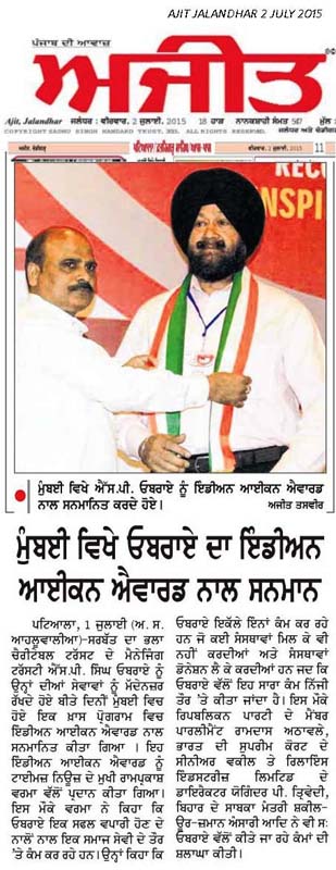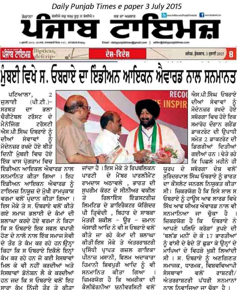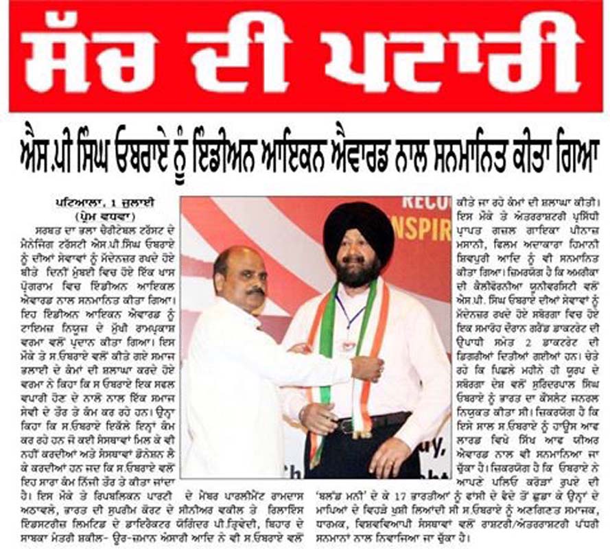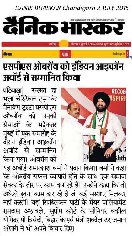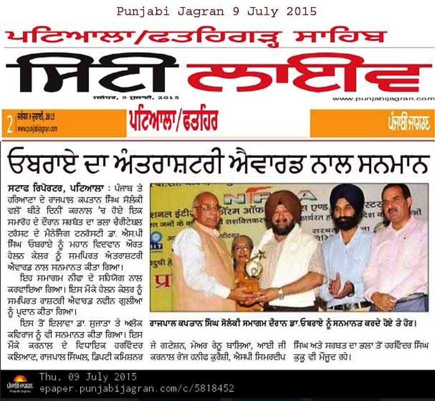 July 2015 - Governor of Haryana prof Kaptan Singh Solanki honoured Dr. S.P SINGH Oberoi