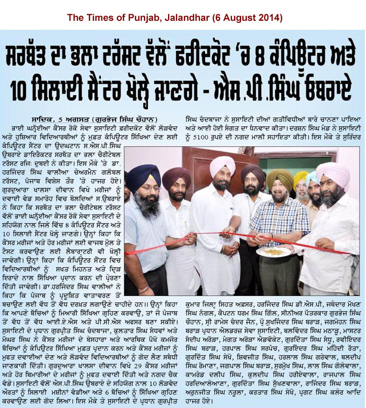 (6 August 2014),S. S.P. Singh Oberoi inaugurate Computer Centre at Faridkot