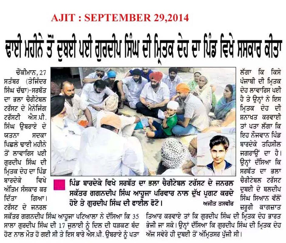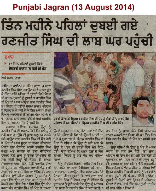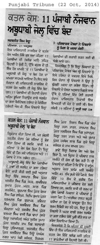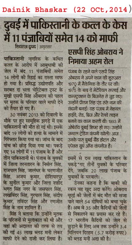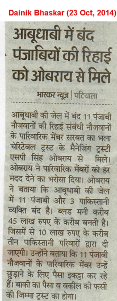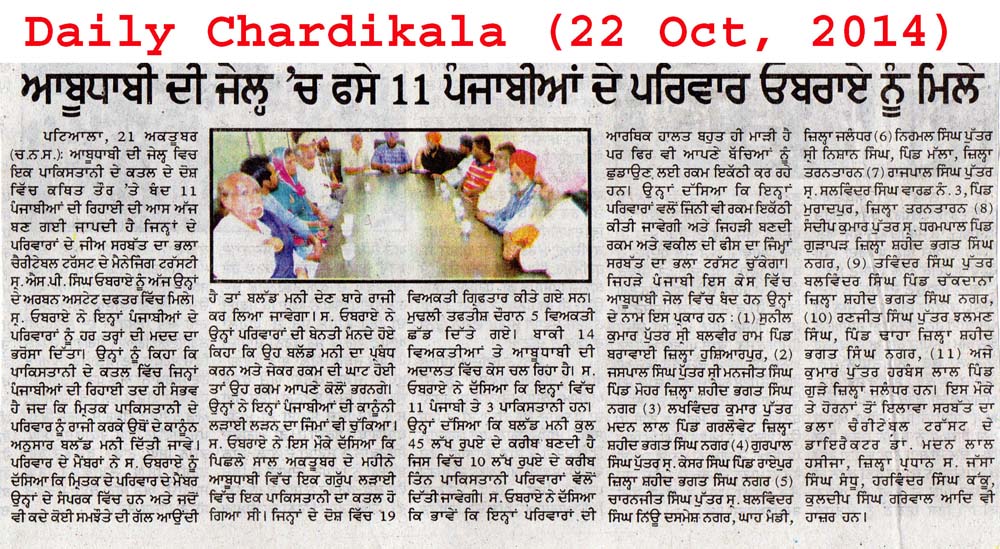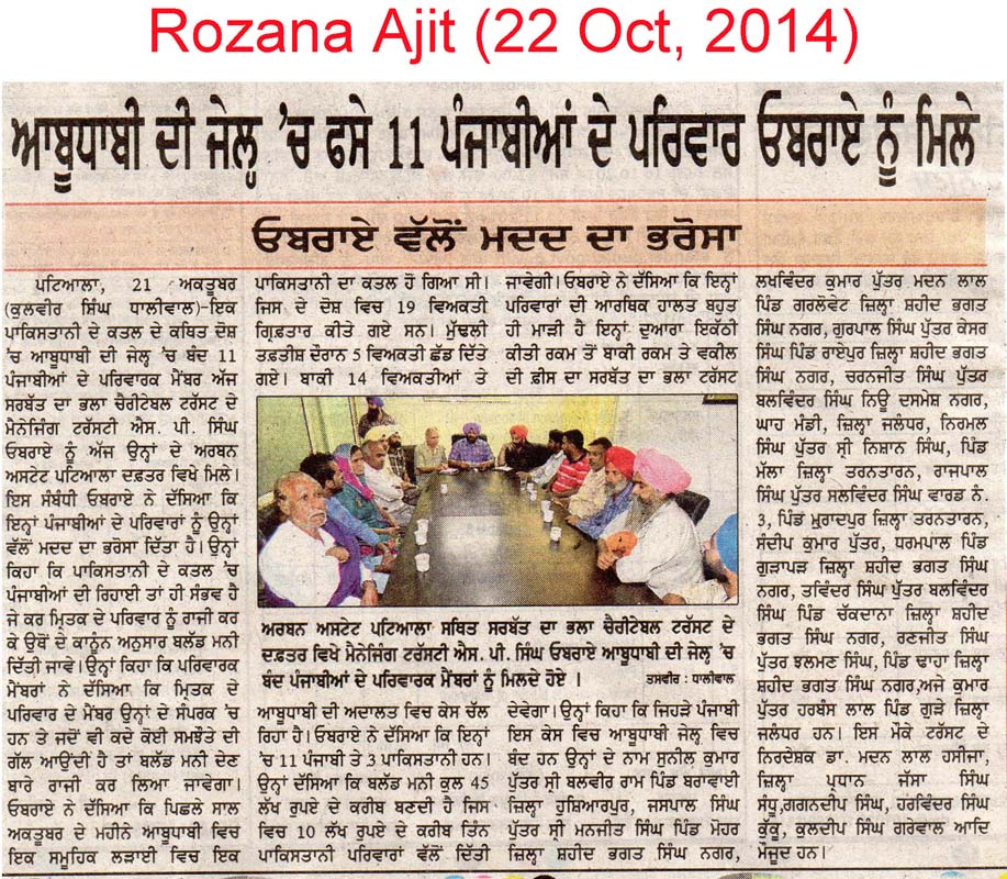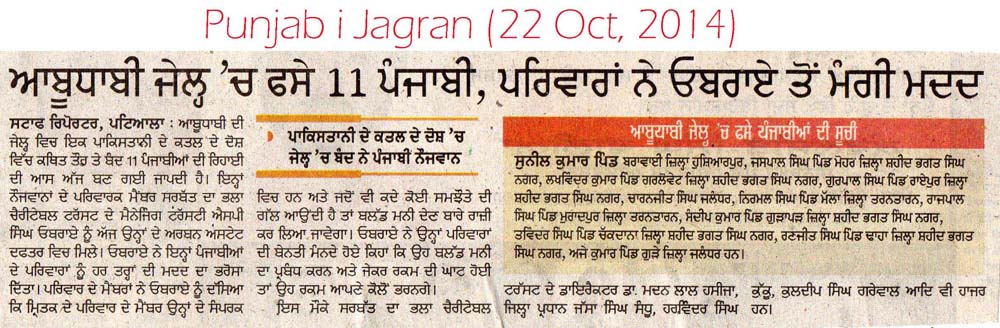 22 Oct, 2014,MAKING EFFORTS TO RELEASE DETAINED PUNJABIS in ABU DHABI JAIL