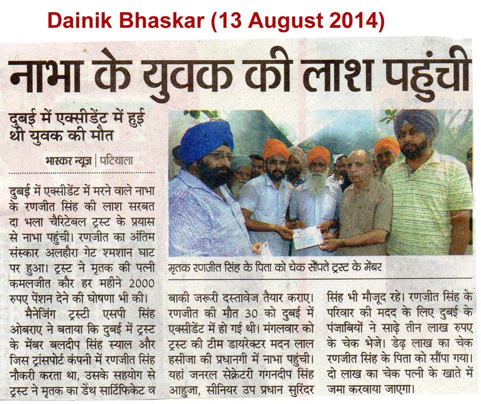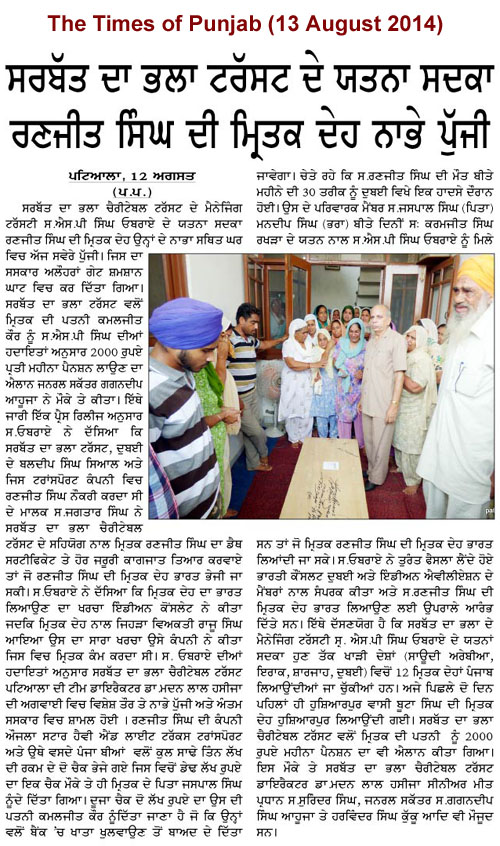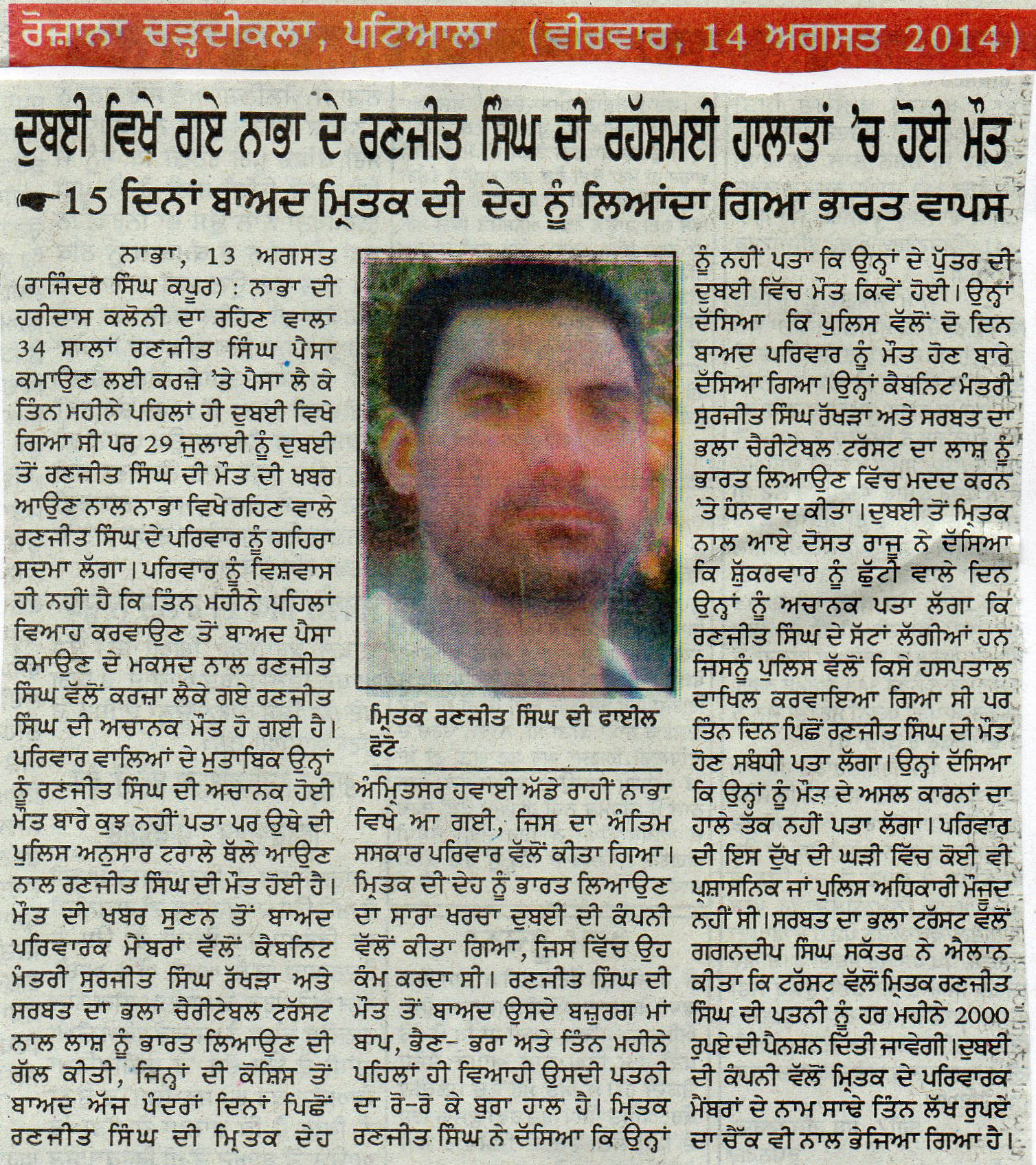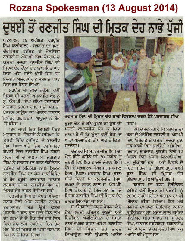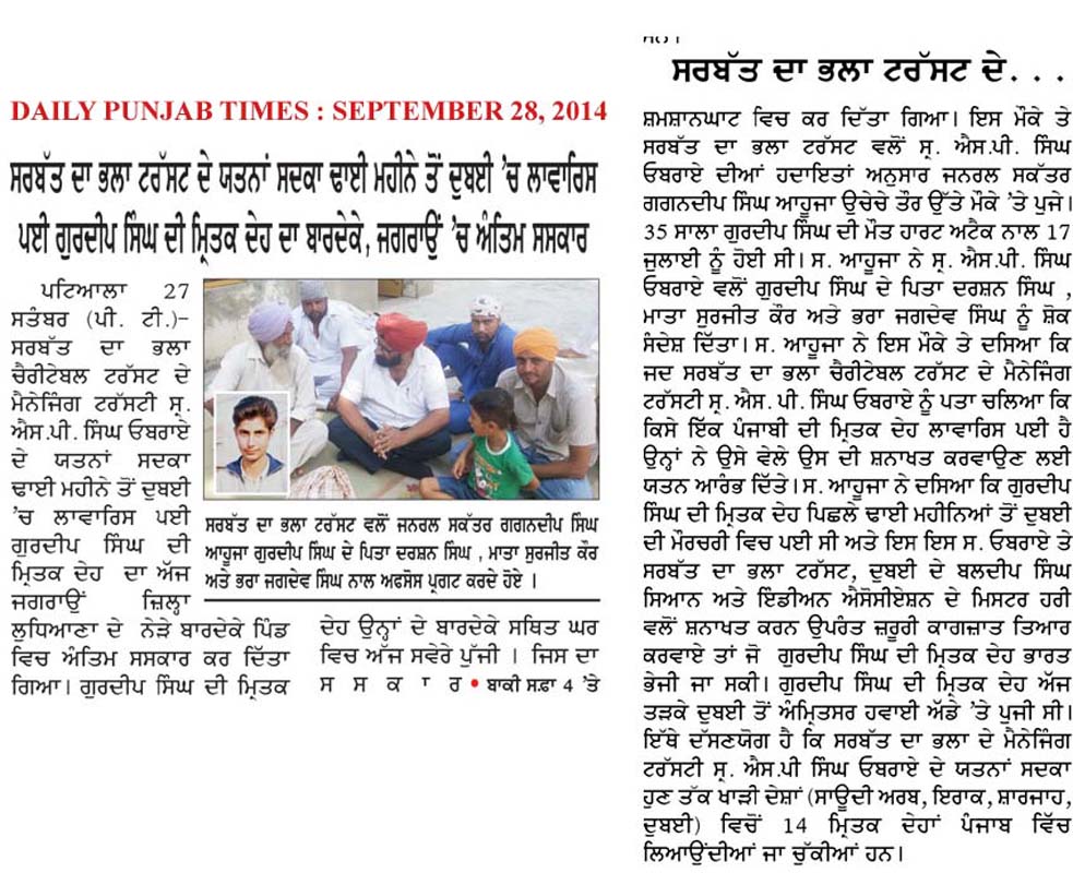 22 Oct, 2014,MAKING EFFORTS TO RELEASE DETAINED PUNJABIS in ABU DHABI JAIL