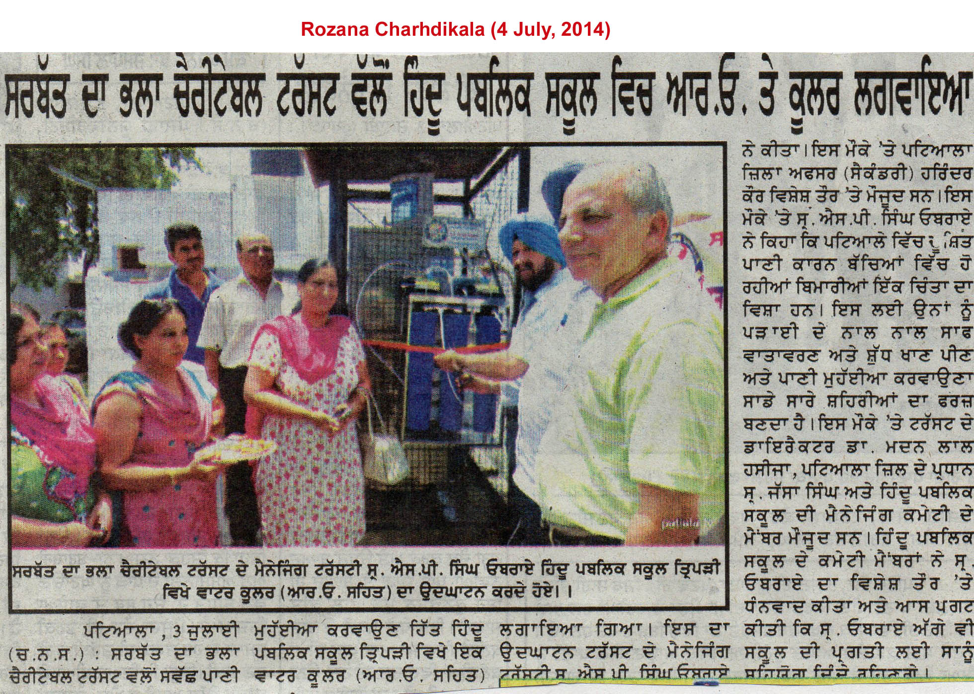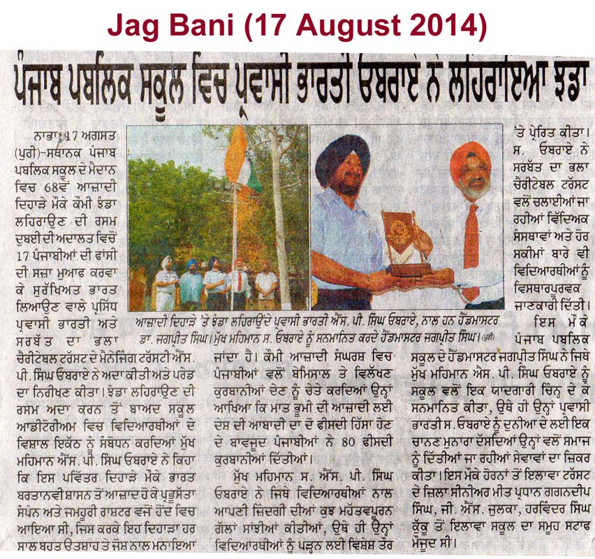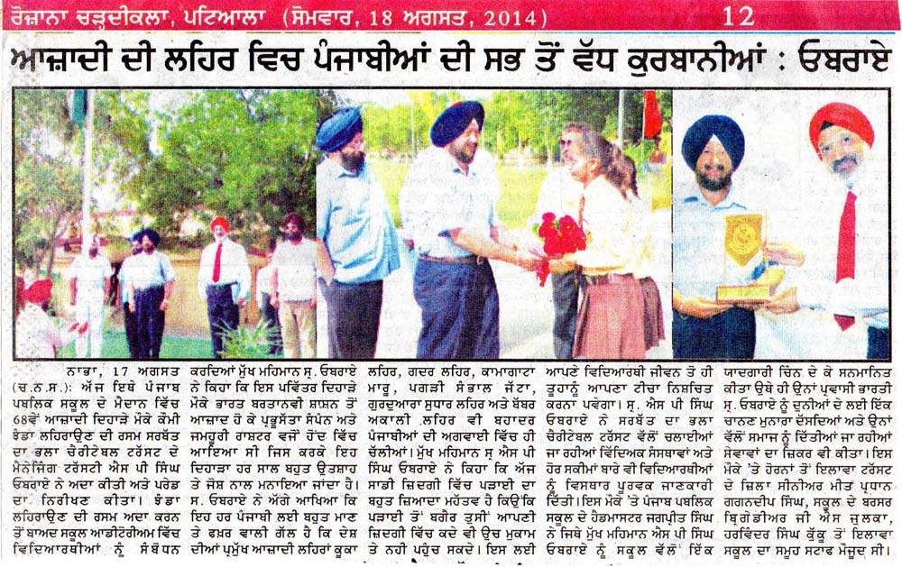 17 & 18 August, 2014 - Nabha School,S. S.P. Singh Oberoi Flag Hoisting at Punjab Public School Nabha, District Patiala dated 15 August 2014 (Independence Day)