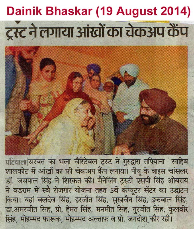 14 Nov 2014Eye Check-up & Operation Camp at Fatehgarh + sarbat da bhala oppened computer centre