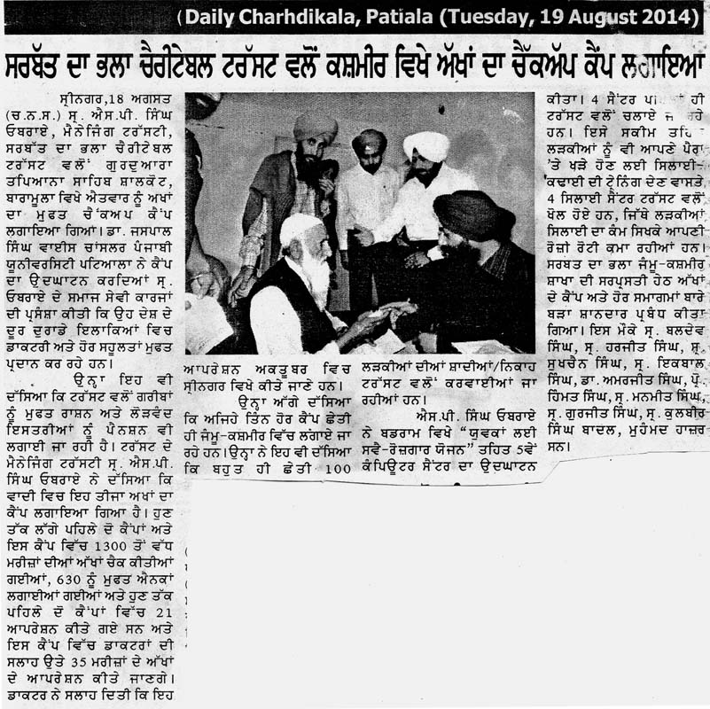 19 August 2014,S. S.P. Singh Oberoi organized Eye Camp at Srinagar