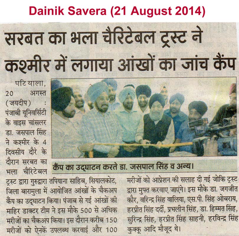 21 August 2014, Eye & Operation Camp at J&K