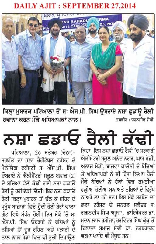 S.P. SIngh is flagging of anti drug rally organised by Block Primary education officer - (2) 26-09-2014