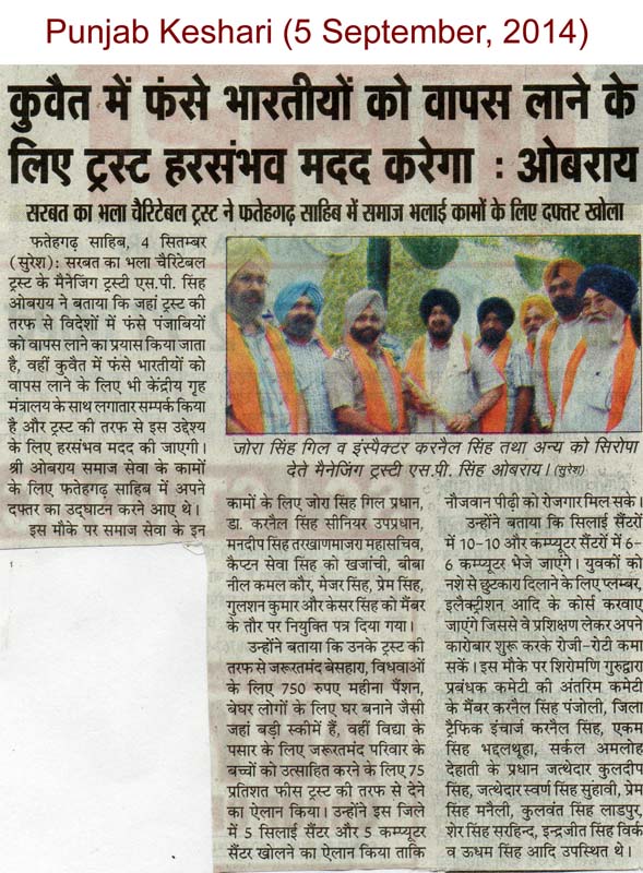 16 Oct, 2014, Opening Stitching Centre in Fatehgarh Sahib