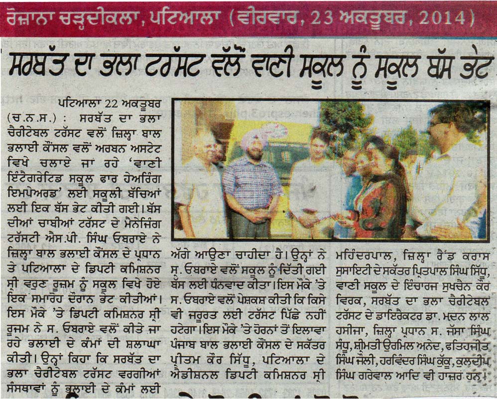 23 October, 2014, Donated Van to Vani School, Urban Estate, Patiala