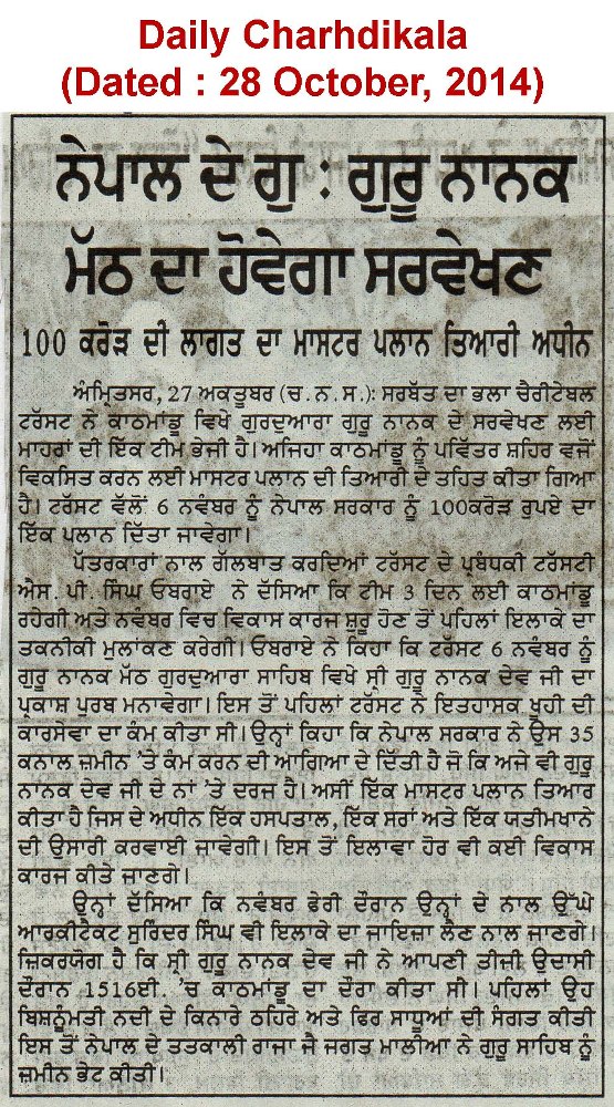 28-10-2014,GURU NANAK MATH IN NEPAL to be SURVEYED