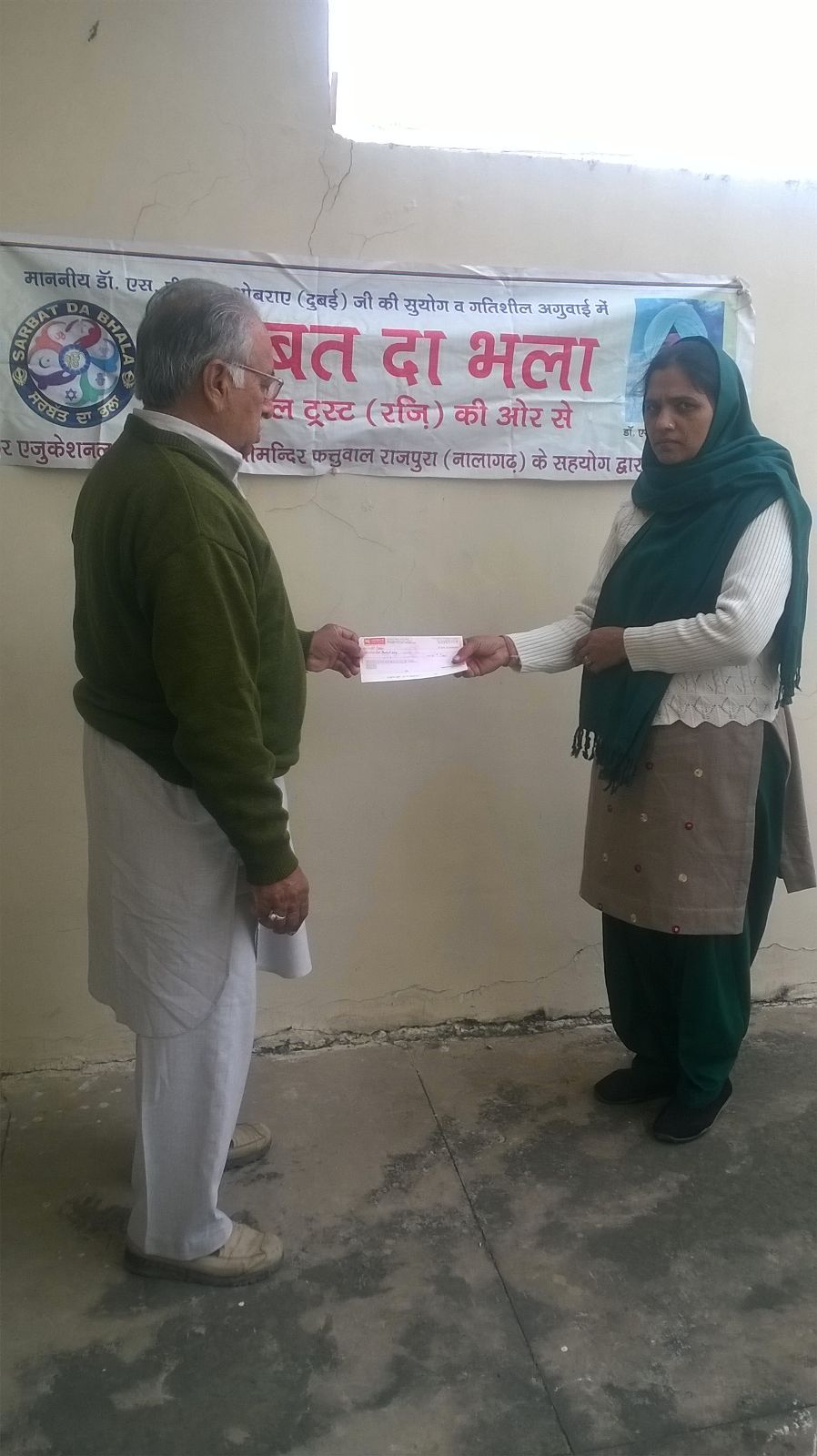 Monthly pension cheques Nalagarh unit of Sarbat Da Bhalla charitable trust Patiala