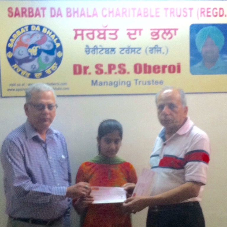 gave Financial Aid to Ms Rajpreet Kaur. Cheque collected