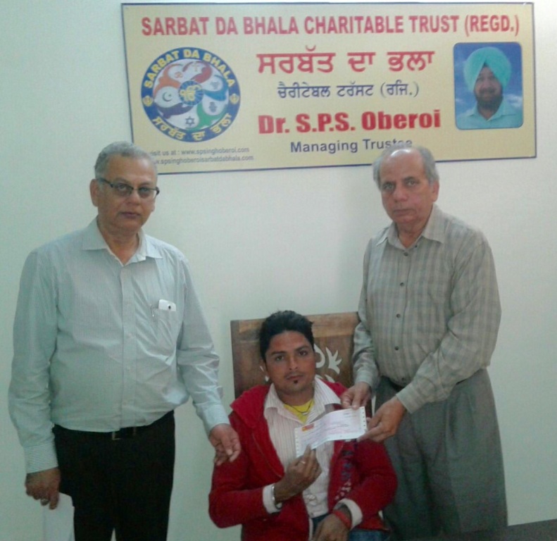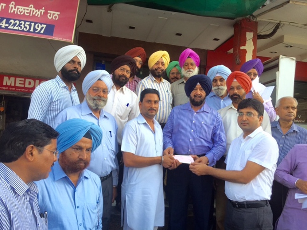 Pic - medical help cheque given to Sh.Subash Dutt for the treatment of his son