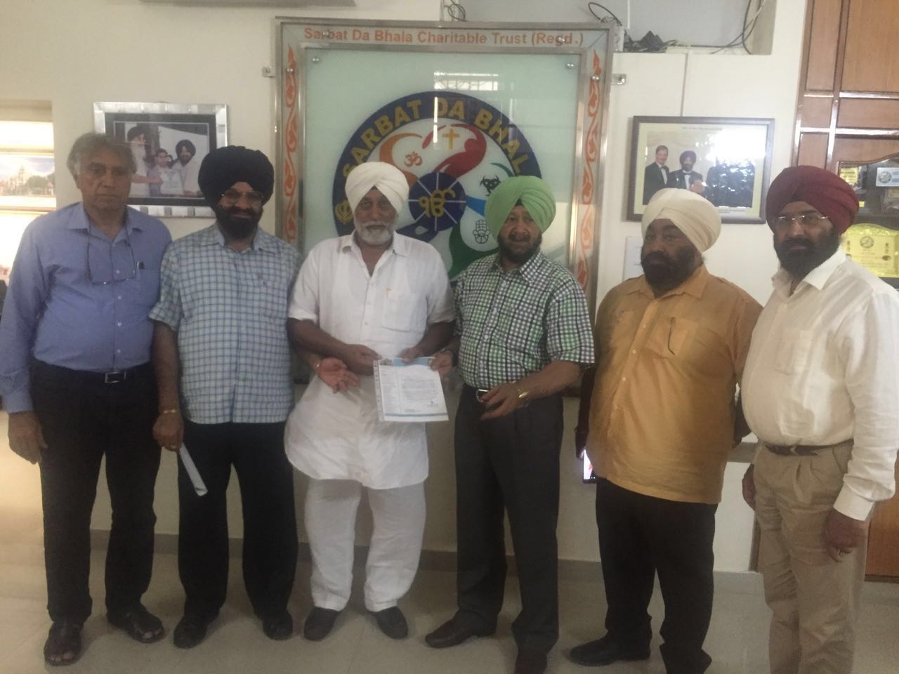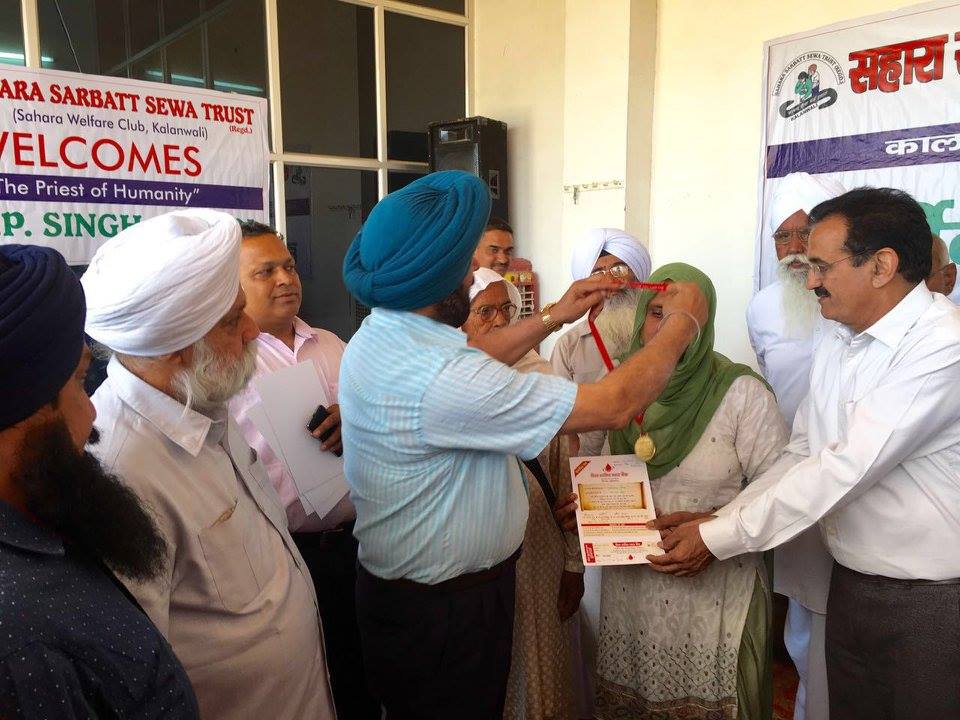 On Behalf of Dr S P Singh Oberoi members of Sarbat Da Bhala Charitable Trust district FatehGarh Sahib