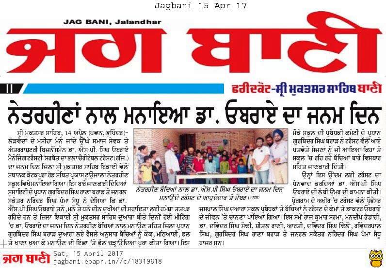 Team members of Sarbat da Bhala Charitable Trust Shri Muktsar Sahib celebrated the Birthday of Prof ( Dr) S.P.Singh Oberoi Ji in the blind school Shri Muktsar Sahib.