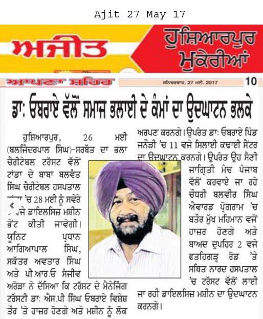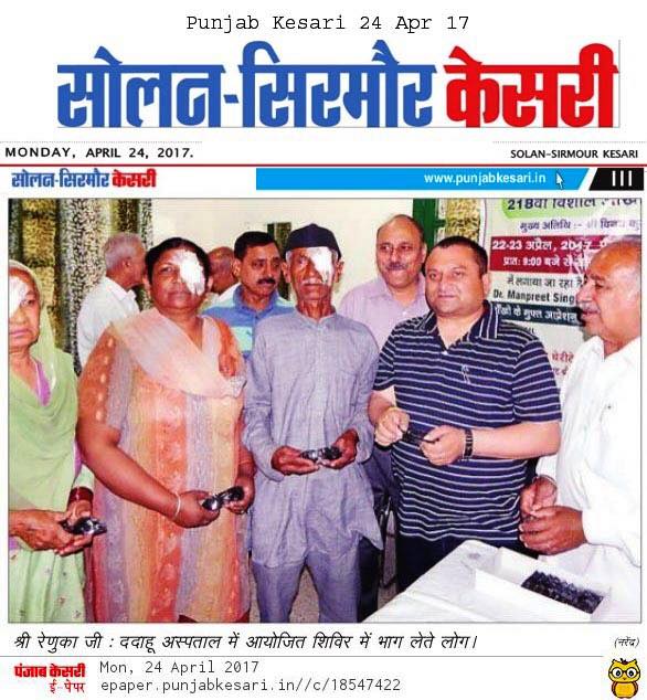 Under the able guidance of Dr. S.P.Singh Oberoi 218 Eye camp was held at Civil Hospital Dadahu . More than 240 were examined and 48 were operated by team of Doctors lead by Dr. Rajeev Jain and Dr. Manpreet Singh Ji