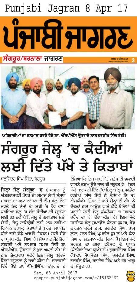 Prof (Dr) SP Singh Oberoi Ji visited at district Jail Sangrur & awarded the appreciation letter to 6 deserving staff of jail issued by DGP Police