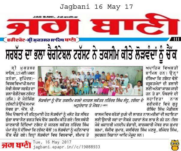 Sarbat da Bhala Charitable Trust Team members of Sri Muktsar Sahib handed over the monthly Pension cheques cheques to 47 widow & needy ladies.