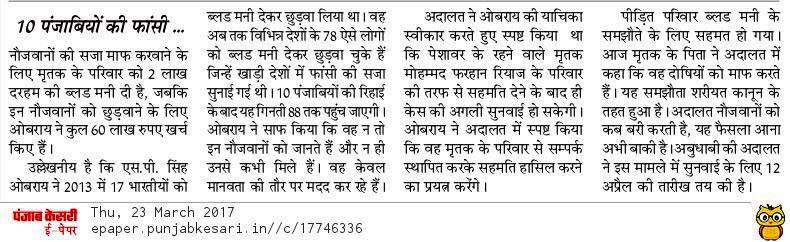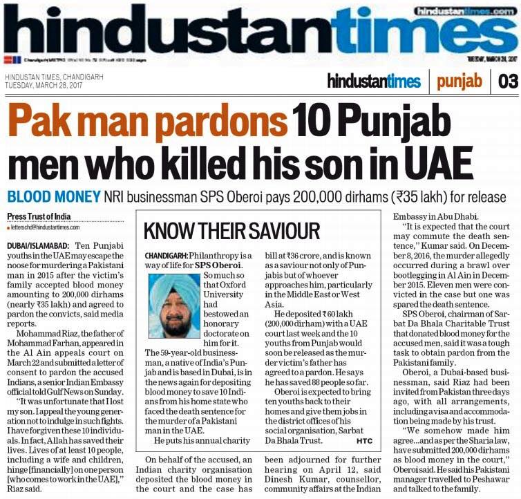 Prof ( Dr ) S P Singh Oberoi Ji paid Blood Money to save 10 youth from Punjab on Death row in UAE