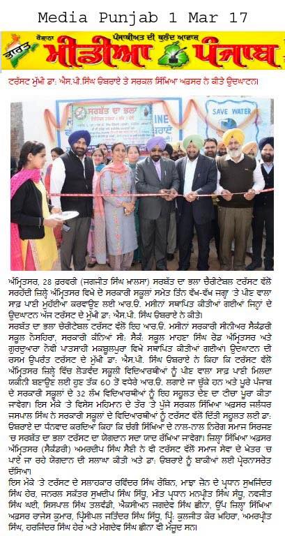 Sarbat da Bhala Charitable Trust installed R-O system at Govt Sen Sec School (girls) Mahana Singh Road , Amritsar
