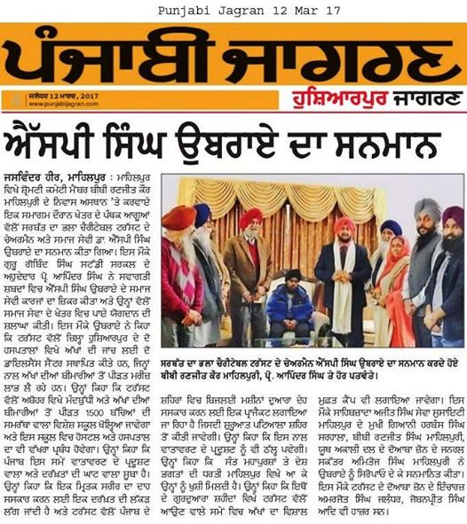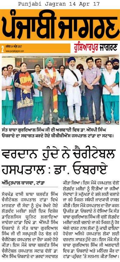 Prof (Dr) S P Singh Oberoi Ji , Mrs Oberoi along with Baba Gurdiyal Singh Jee visited at Baba Balwant Singh ji Memorial Charitable Hospital at Darapur,Urmur Tanda Hoshiarpur