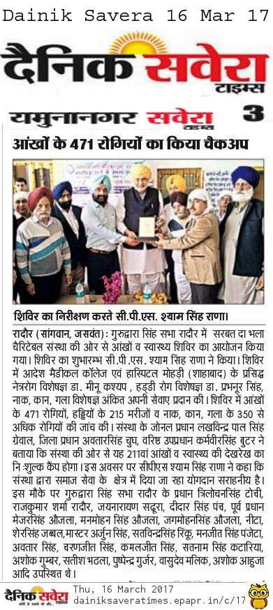 Sarbat da Bhala Charitable Trust organized 203 rd Free Eye Check up camp at village chachrolli district Kurukshetra Haryana