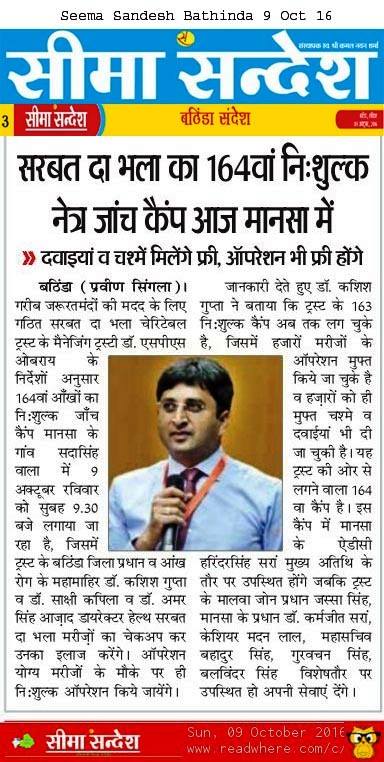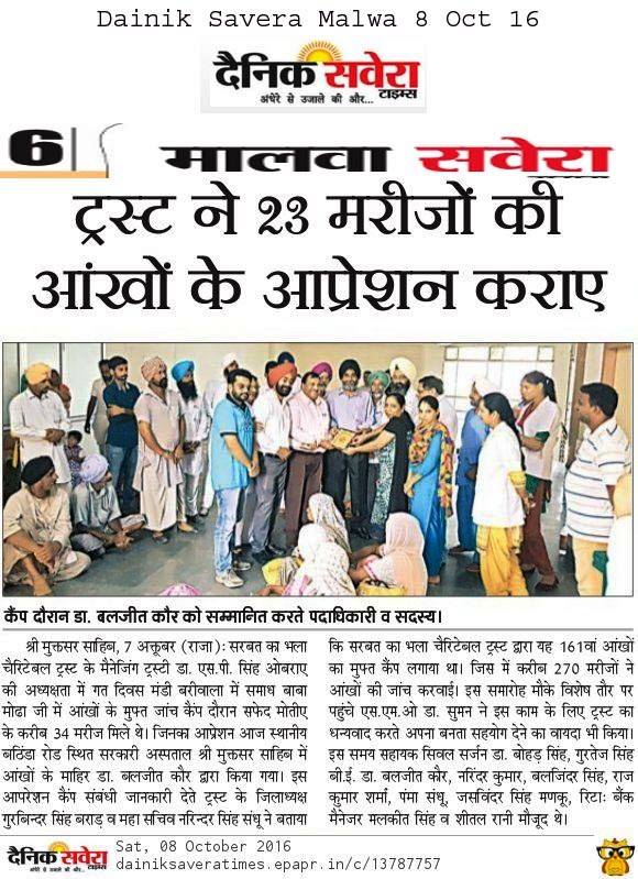 Sarbat da Bhala Charitable Trust free Eye Camp no - 166 at district Moga.
