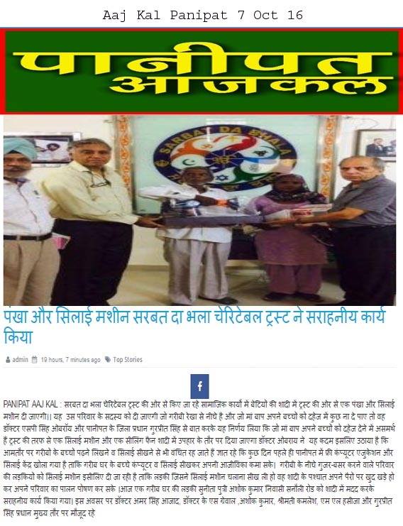 Sarbat da Bhala Charitable Trust has given Sewing Machine and Ceiling Fan for the marriage of D/o Kamlesh Kaur from Panipat