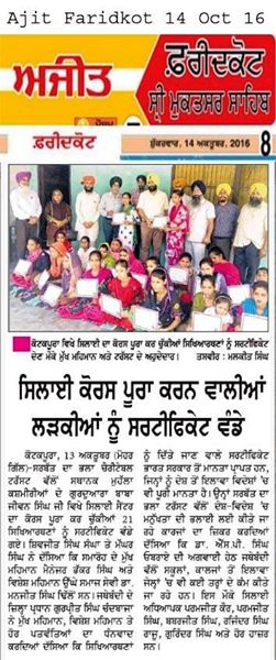 Sarbat da Bhala Charitable Trust Faridkot Sewing center students successfully completed their courses. They have been awarded with certificates by SDBCT Faridkot unit members