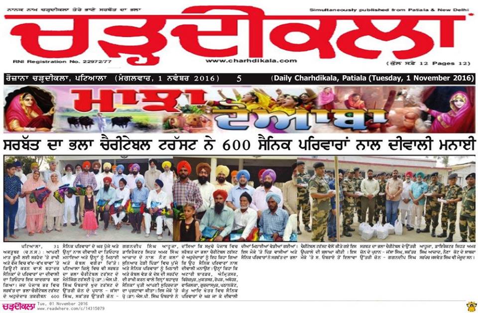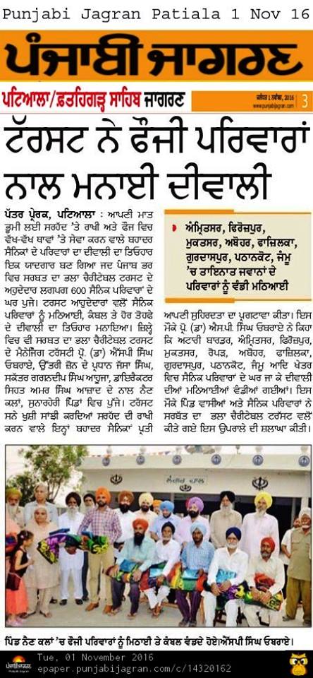 Sarbat Da Bhala Charitable Trust Shri Muktsar sahib team members visited on duty army soilder's residence and shared joys of festivities on occasion of Diwali