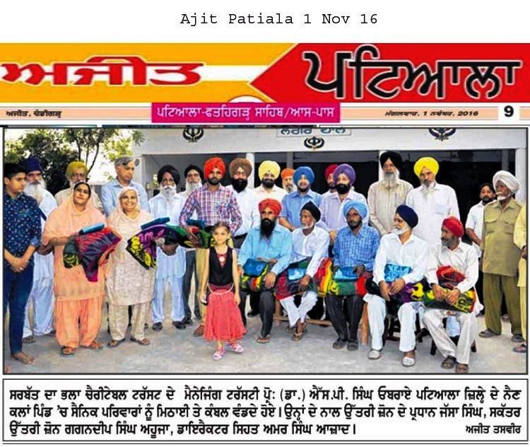Prof. ( Dr.) S P Singh Oberoi ji along with Dr Azad, Sdr Jassa Singh Ji, Sdr Gagandeep Singh Ahuja visited the villages of district Patiala ( Sunarheri, ninakot etc..) & distributed sweets & blankets