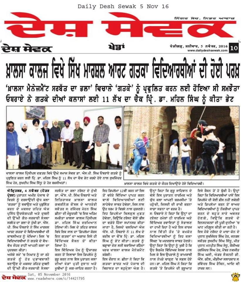 Prof (Dr) S P Singh Oberoi ji handed over the cheque of Rs 11 lakh & 25 thousands ( which is 75% yearly fees of 50 Students ) to college Principal Dr Mehal Singh Ji & staff members