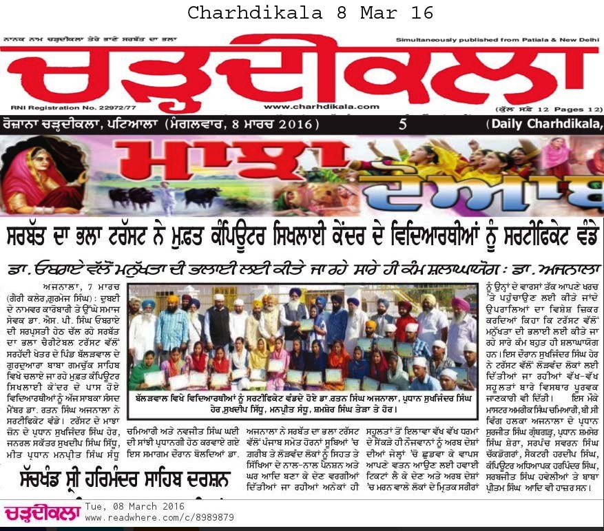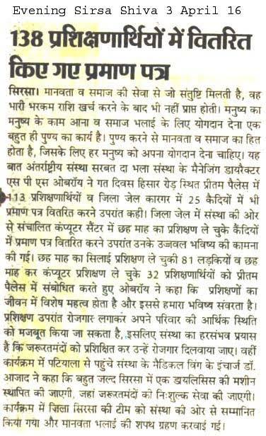 Sarbat Da Bhala Charitable Trust students of Computer Center & Sewing Center of Sirsa successfully completed their courses