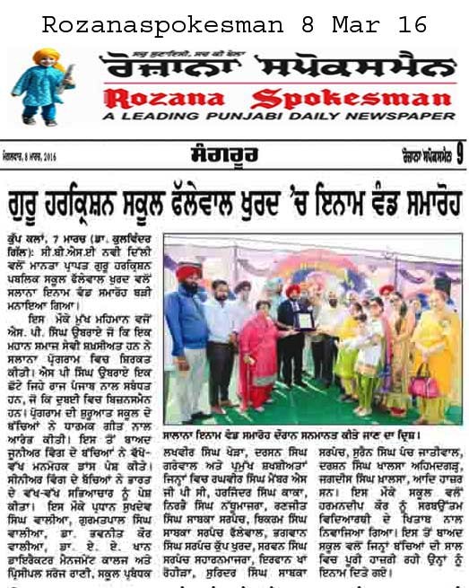 distributed prizes to the students of Guru Harkrishan public school Sangrur