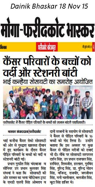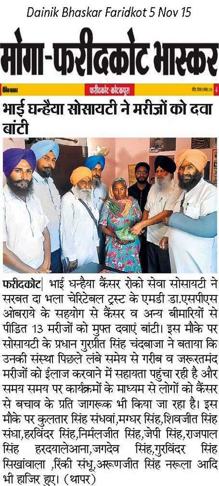 SDB Trust Providing financial help to 13 cancer Patients at Faridkot