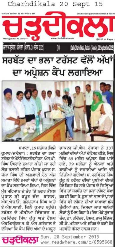 20.sept-organized 84th Free eye operation camp in Mata Naina Arya Dharamshala, Samana
