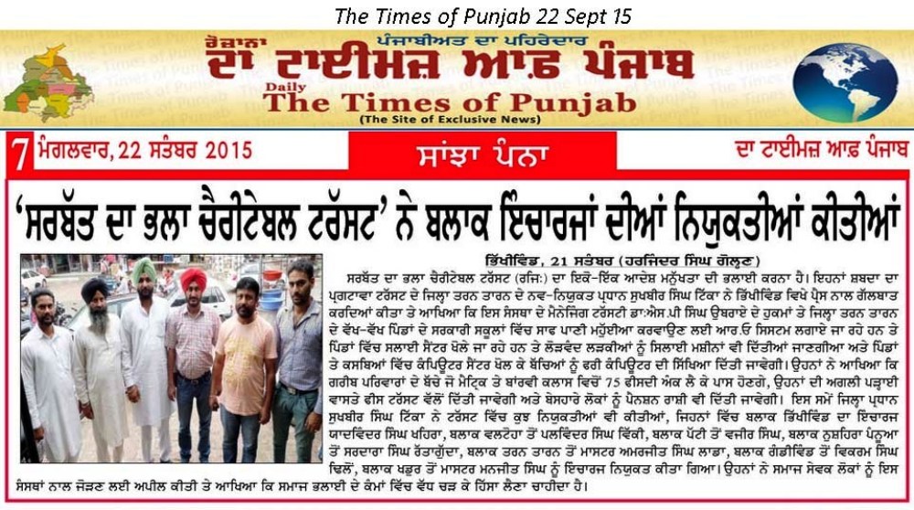 Sarbat Da Bhala Charitable Trust donated R.O. systems in various Government school