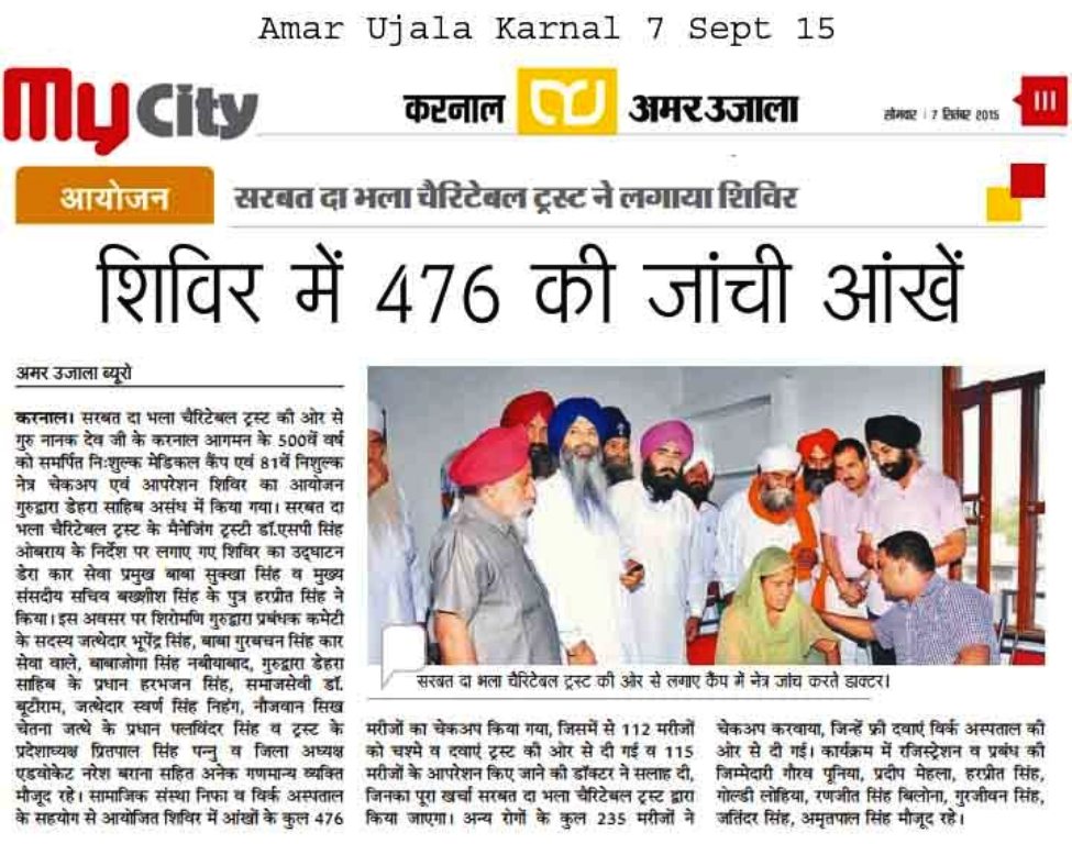 Eye Camp no.81 at Gurudwara Dera Sahib Assand Karnal