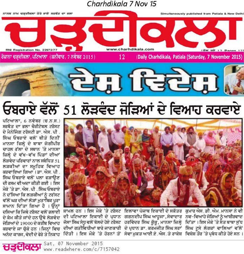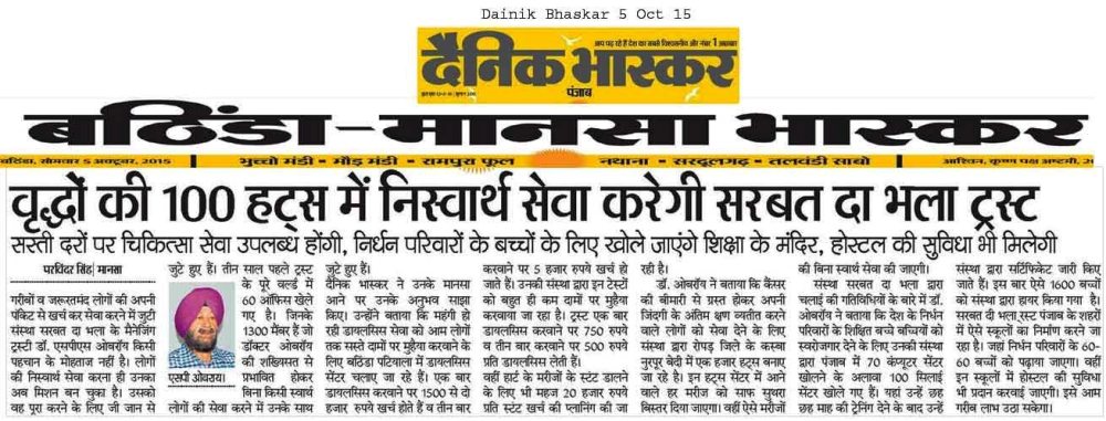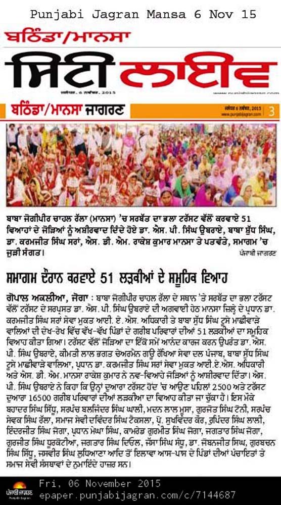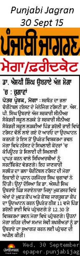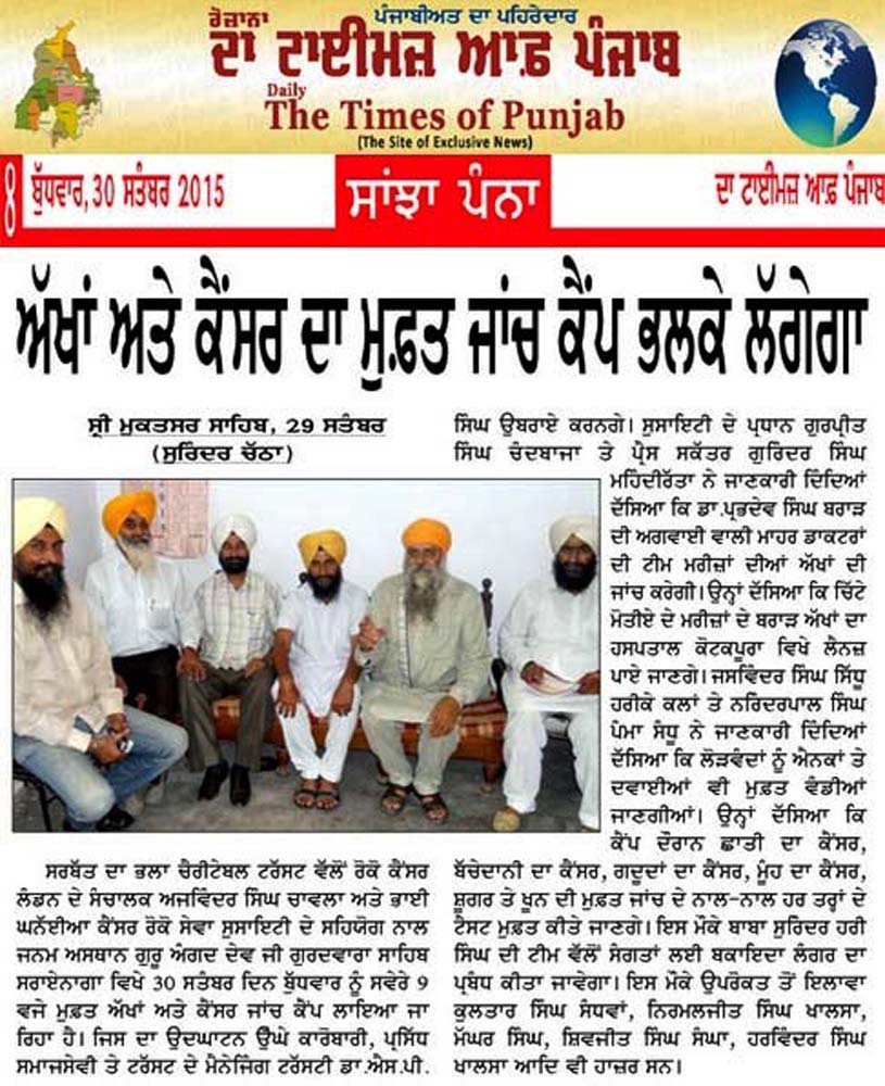 Medical check up Camp at Ropar, Punjab Dated 26-09-15