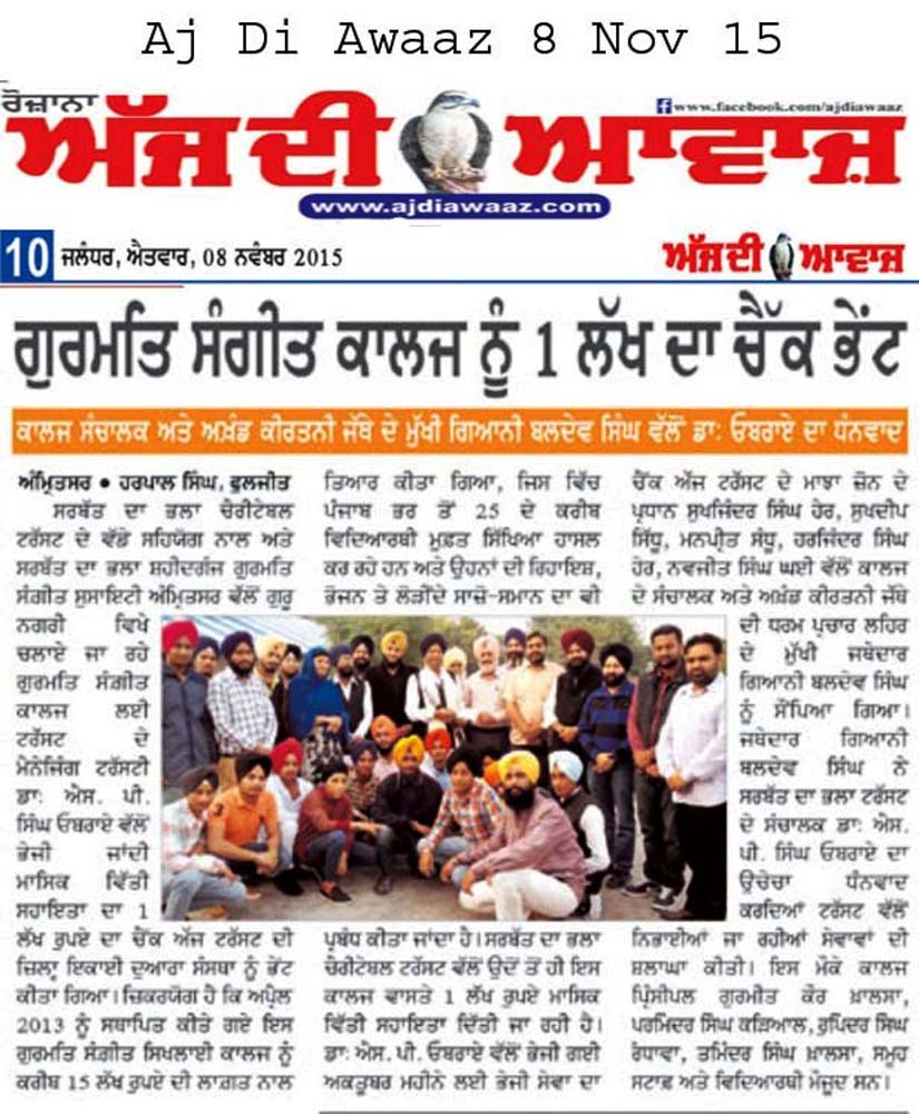 1 Lakh donated to Shaheed Gurmat Sangeet Collage Amritsar